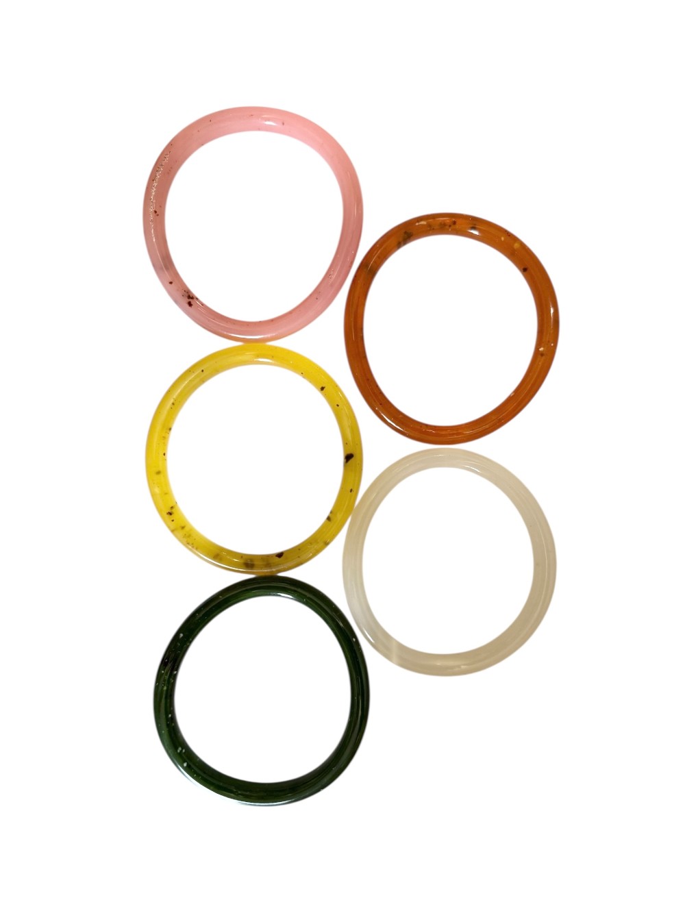 Vintage Bakelite Curved Nesting Bangles - Orange / Green / Yellow / White / Pink