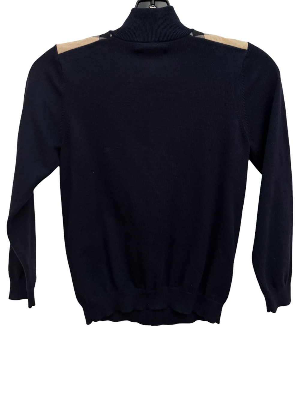 Zip Up Sweater W/ Check Print Shoulder Patches - Navy/Tan/Red - BLEMISHES/WEAR