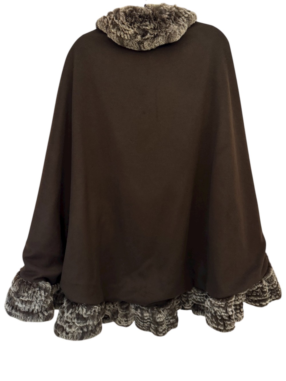 Finland Fox Fur Trimmed Cashmere Cape - Brown