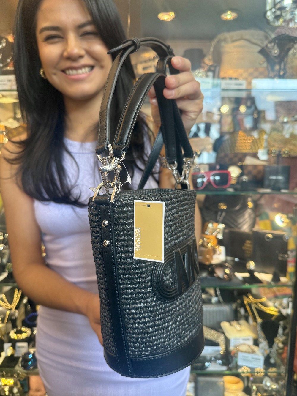 NEW W/ TAGS - Townsend Small Straw Bucket Crossbody Bag - Black