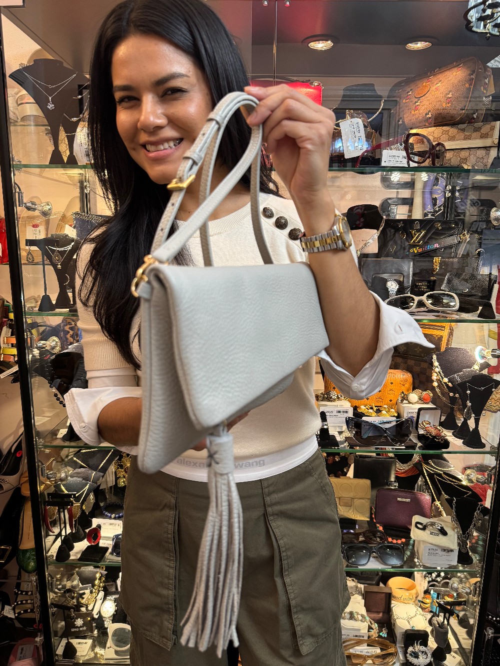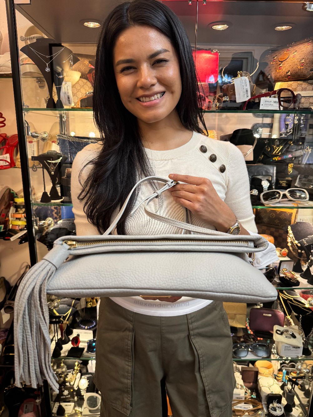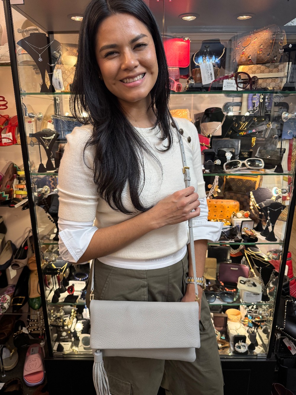 Carly Leather Fold-Over Convertible Clutch/Crossbody - Gray
