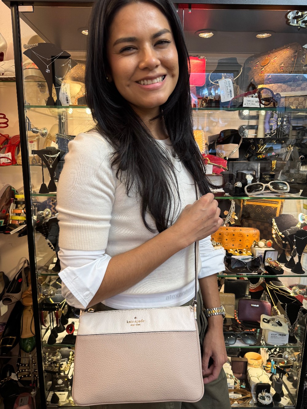 Colorblock Pebbled Leather Leila Triple Gusset Crossbody - Tan / Cream