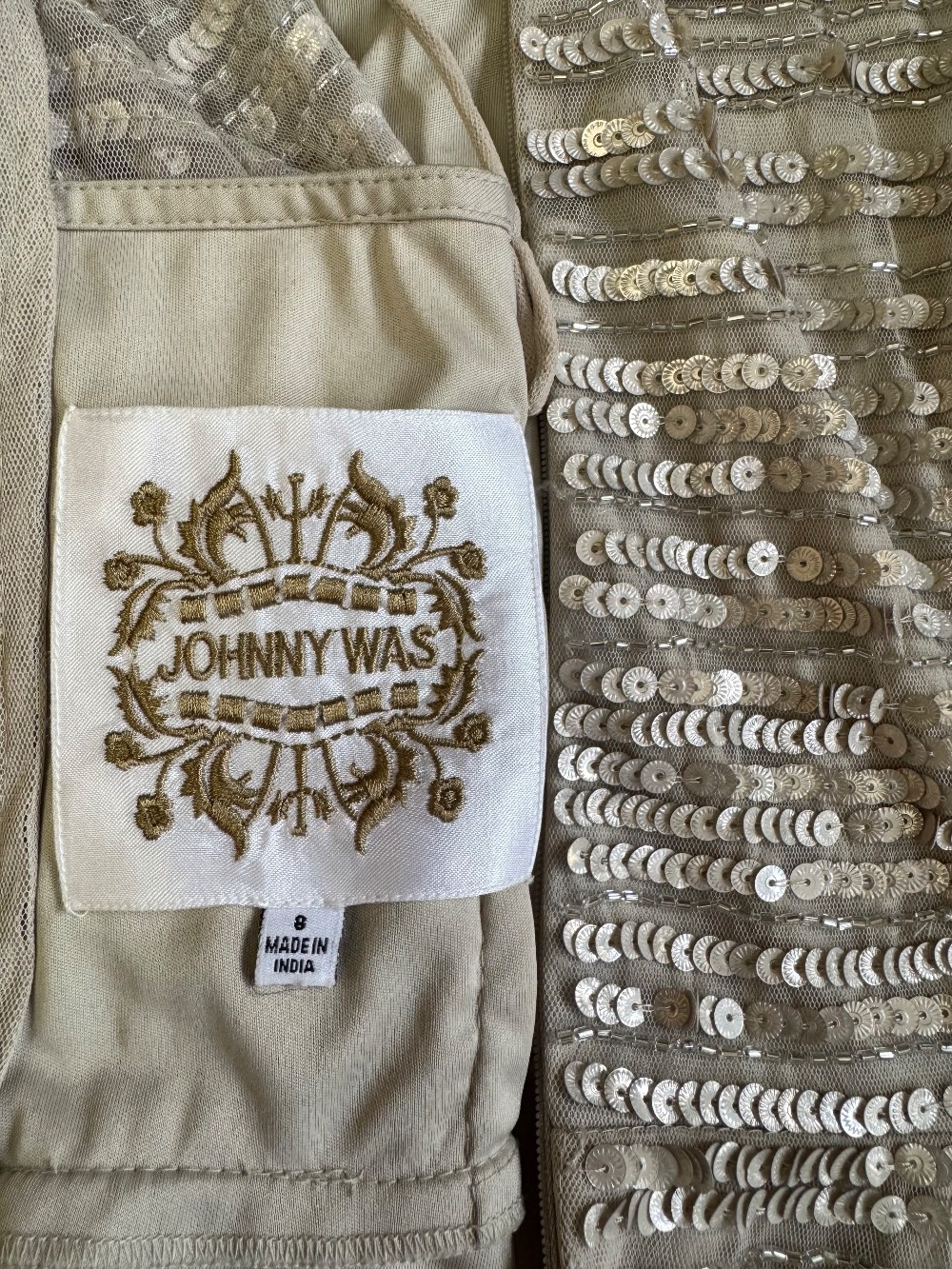 Sequined Short Sleeve Mesh Midi Dress - Champgne