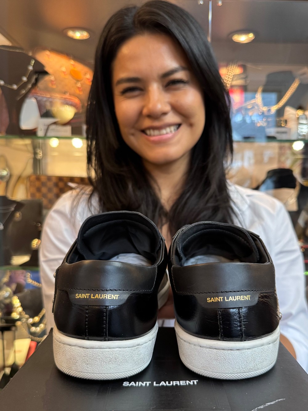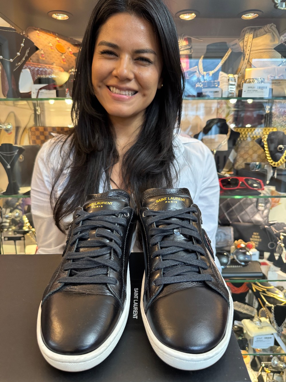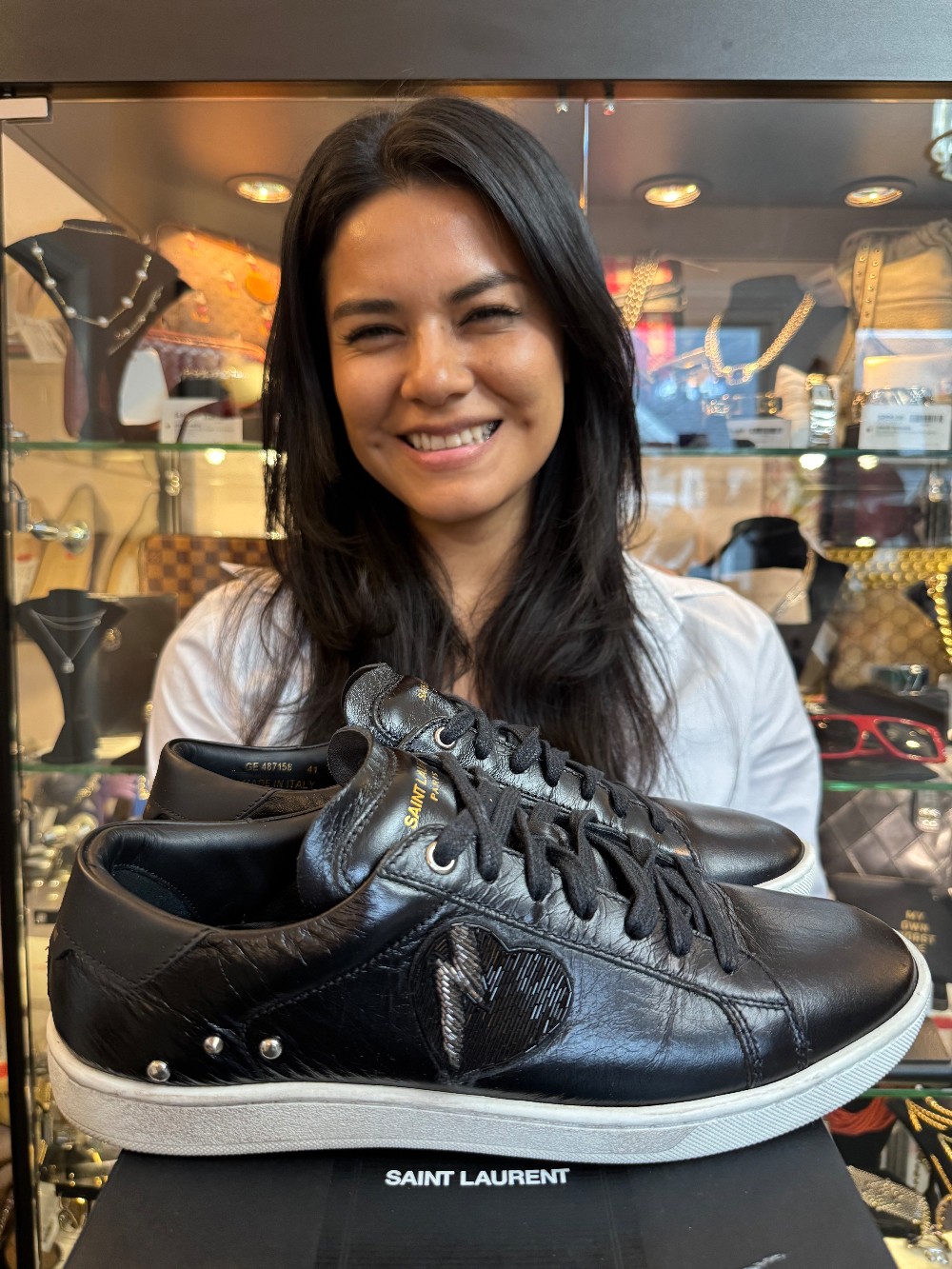 Leather Low-top Sneaker w/ Lightning & Heart Patch - Black - W/ BOX