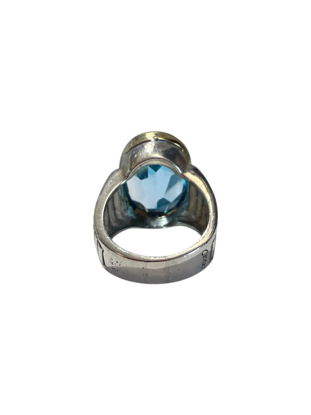 18K Yellow Gold Trimmed 925 Sterling Silver Topaz Ring