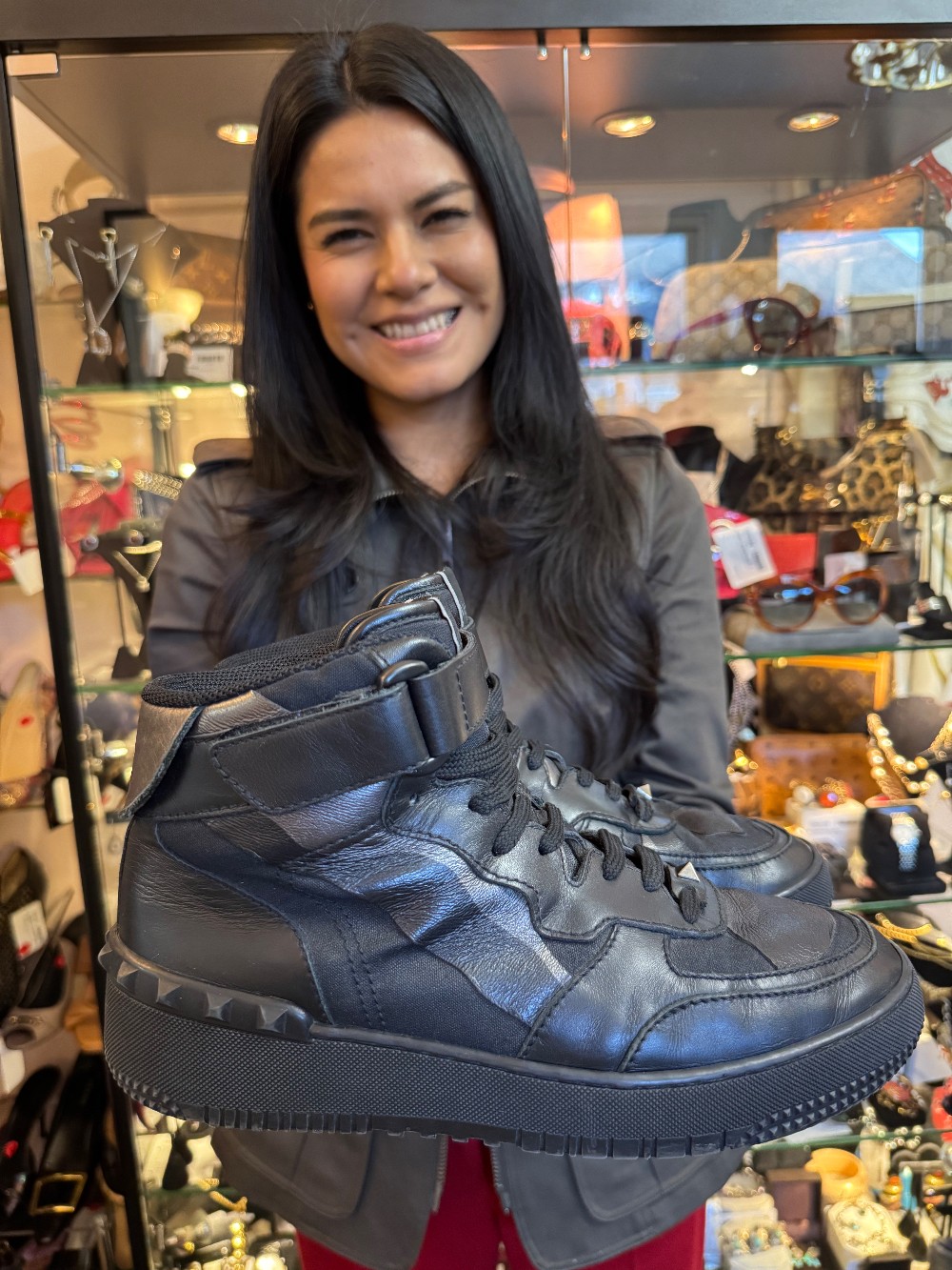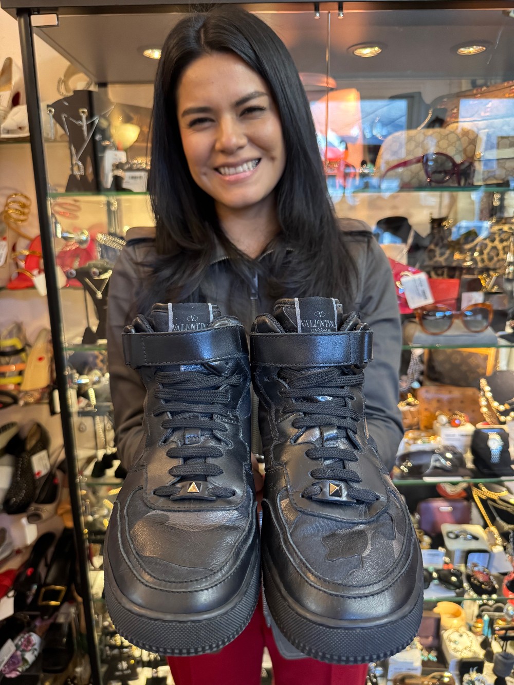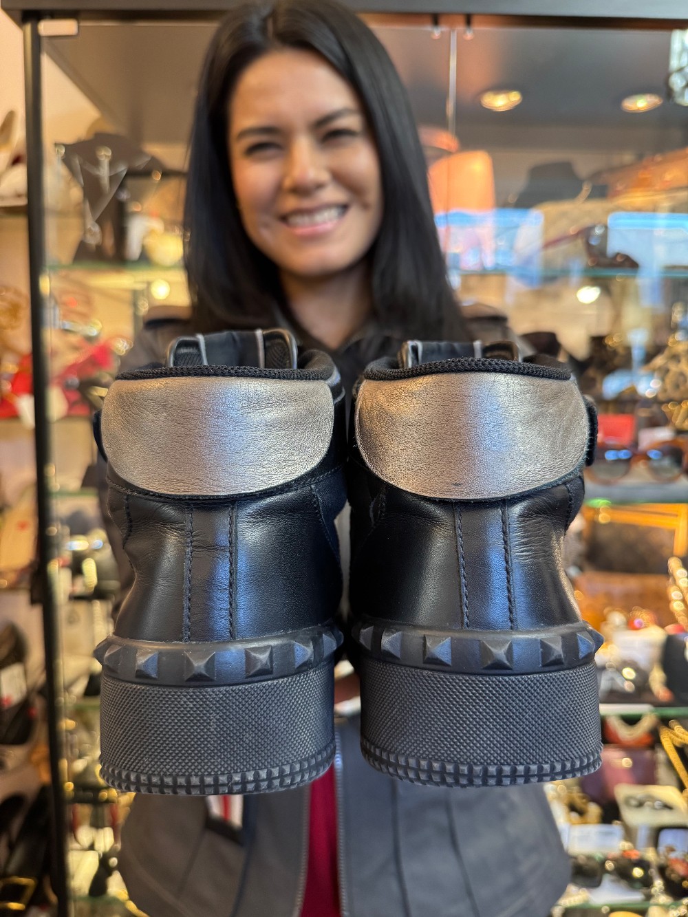 Rockstud Trimmed Camo High Top Sneaker - Black/Black