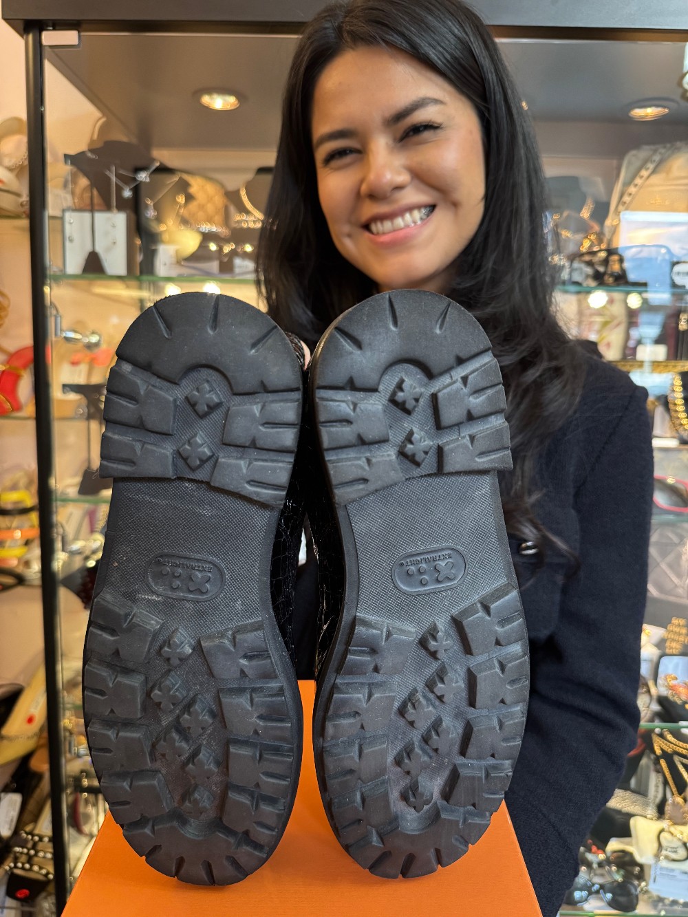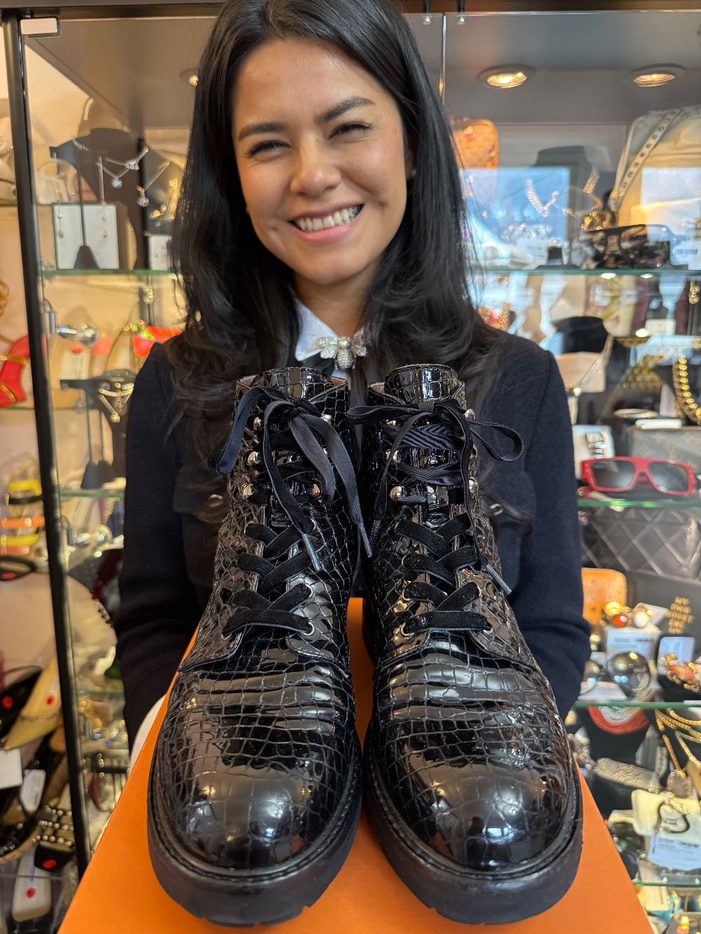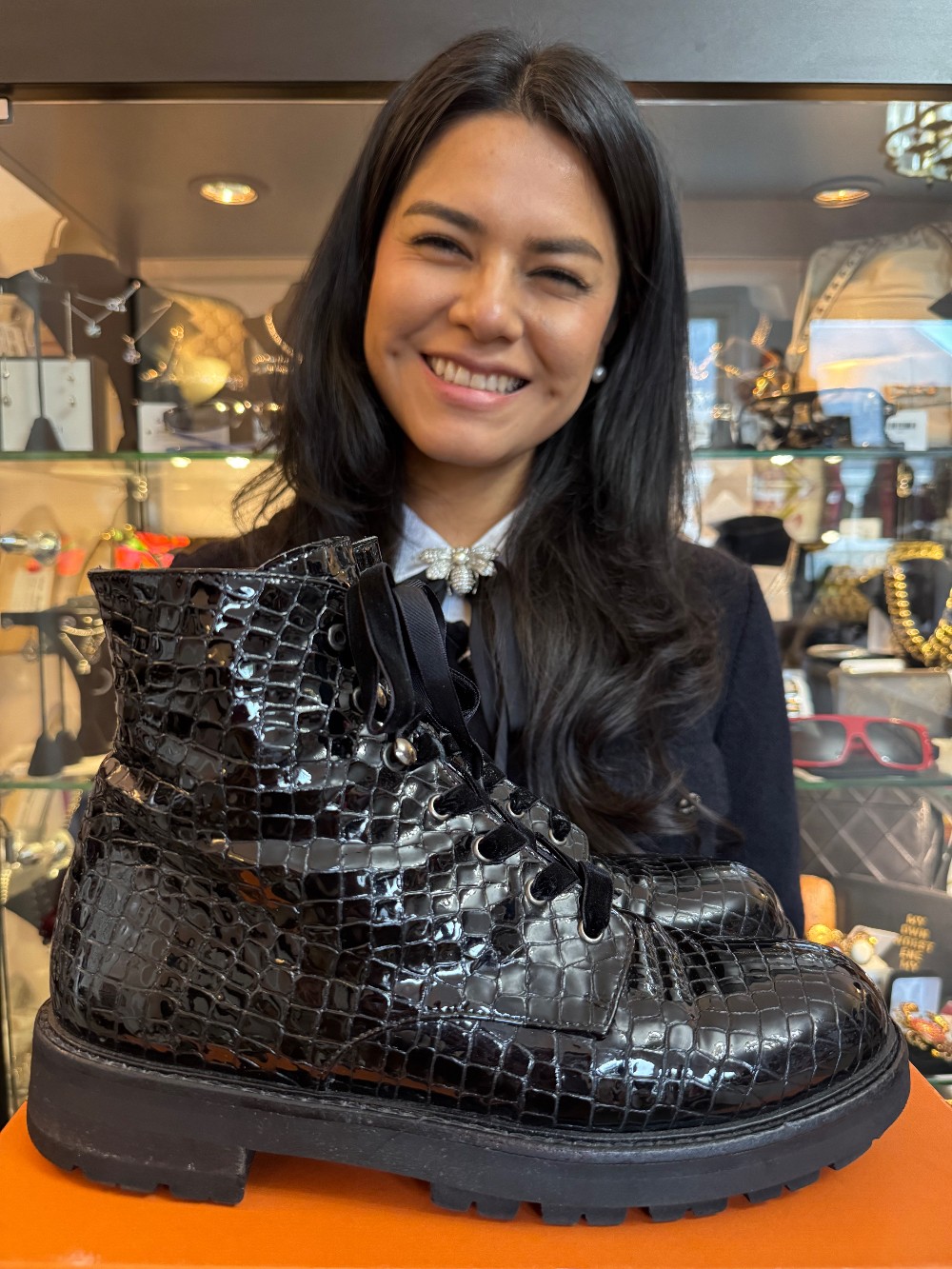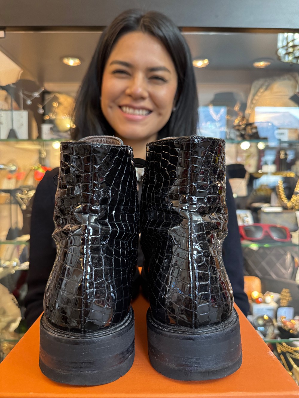 Croc Embossed Patent Leather Combat Boot / Black - W/ BOX