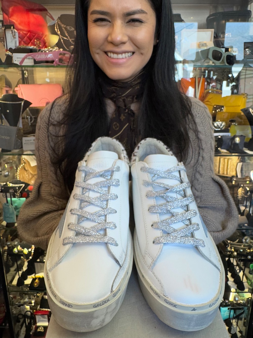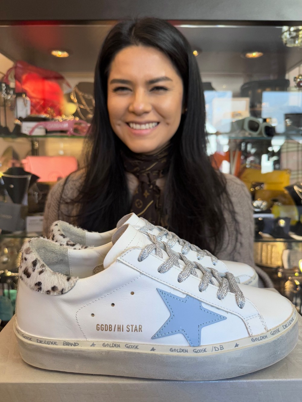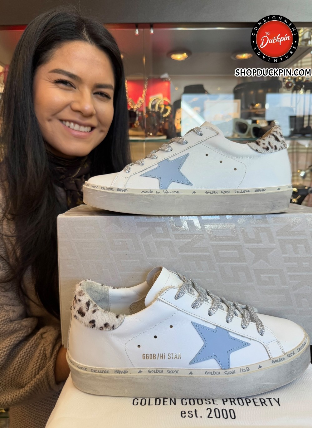 Hi Star Classic W/List Calf Hair Trim Sneaker - White /Light Blue - W/BOX /BLEMISHES