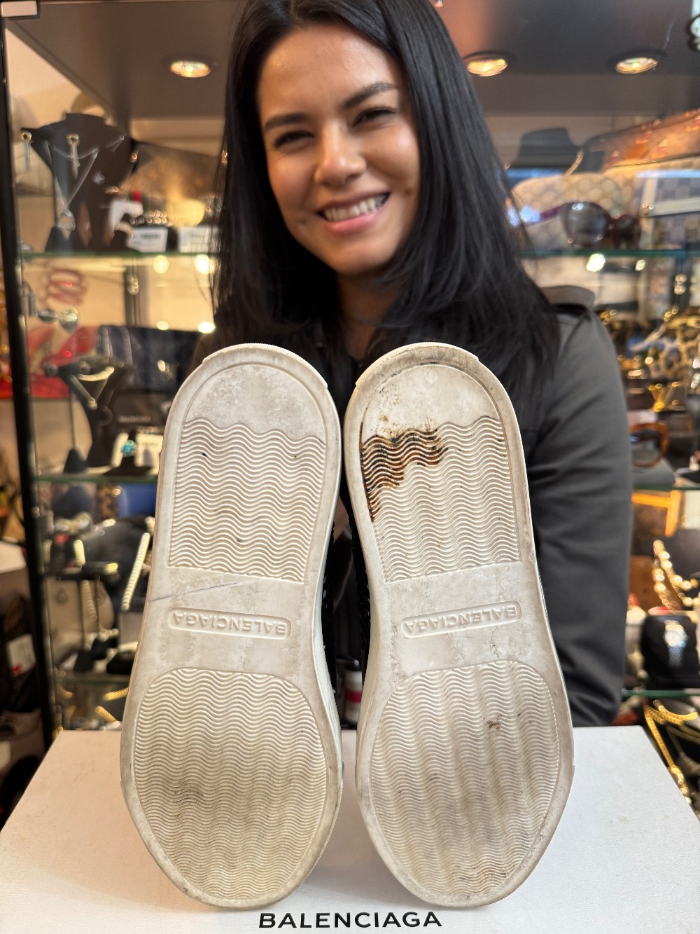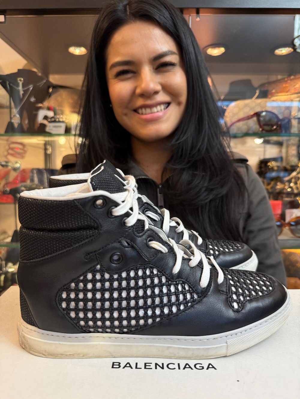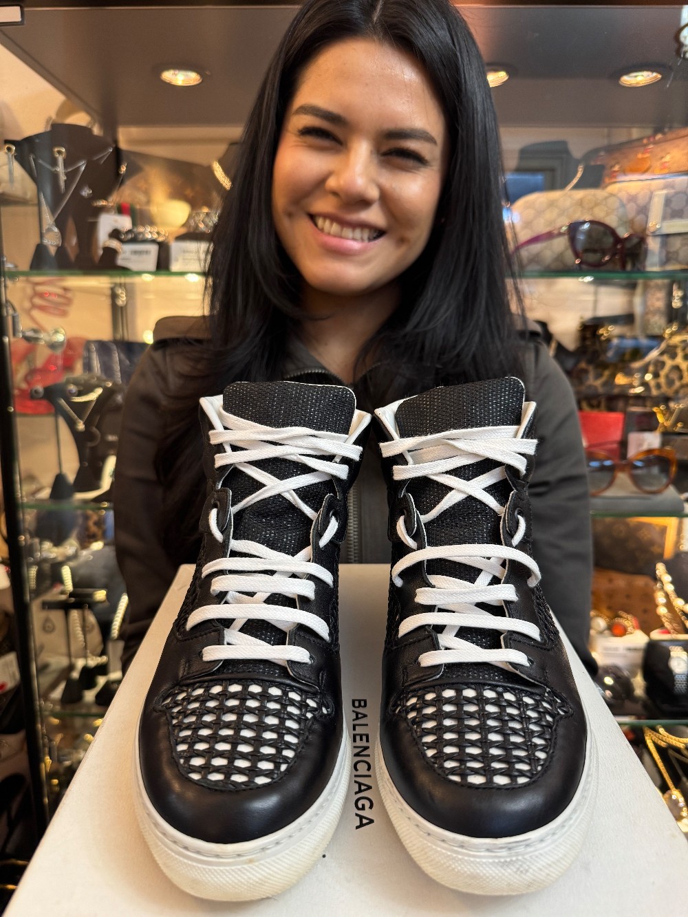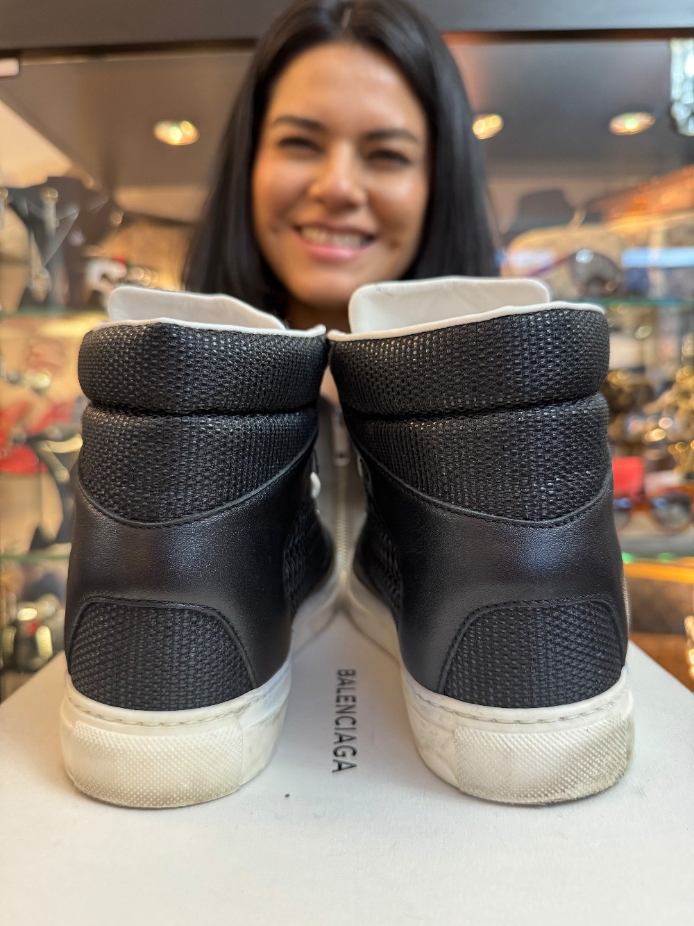 Trainer Leather Monochrome Grid Hi-Top Sneakers - Black/White - W/ BOX - WEAR