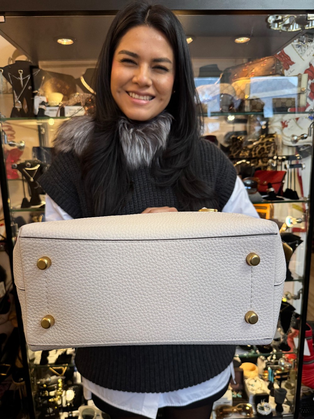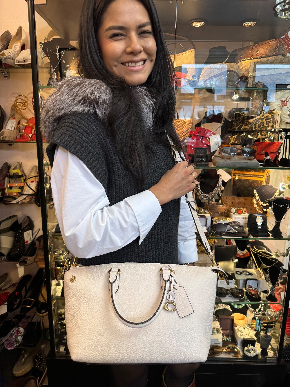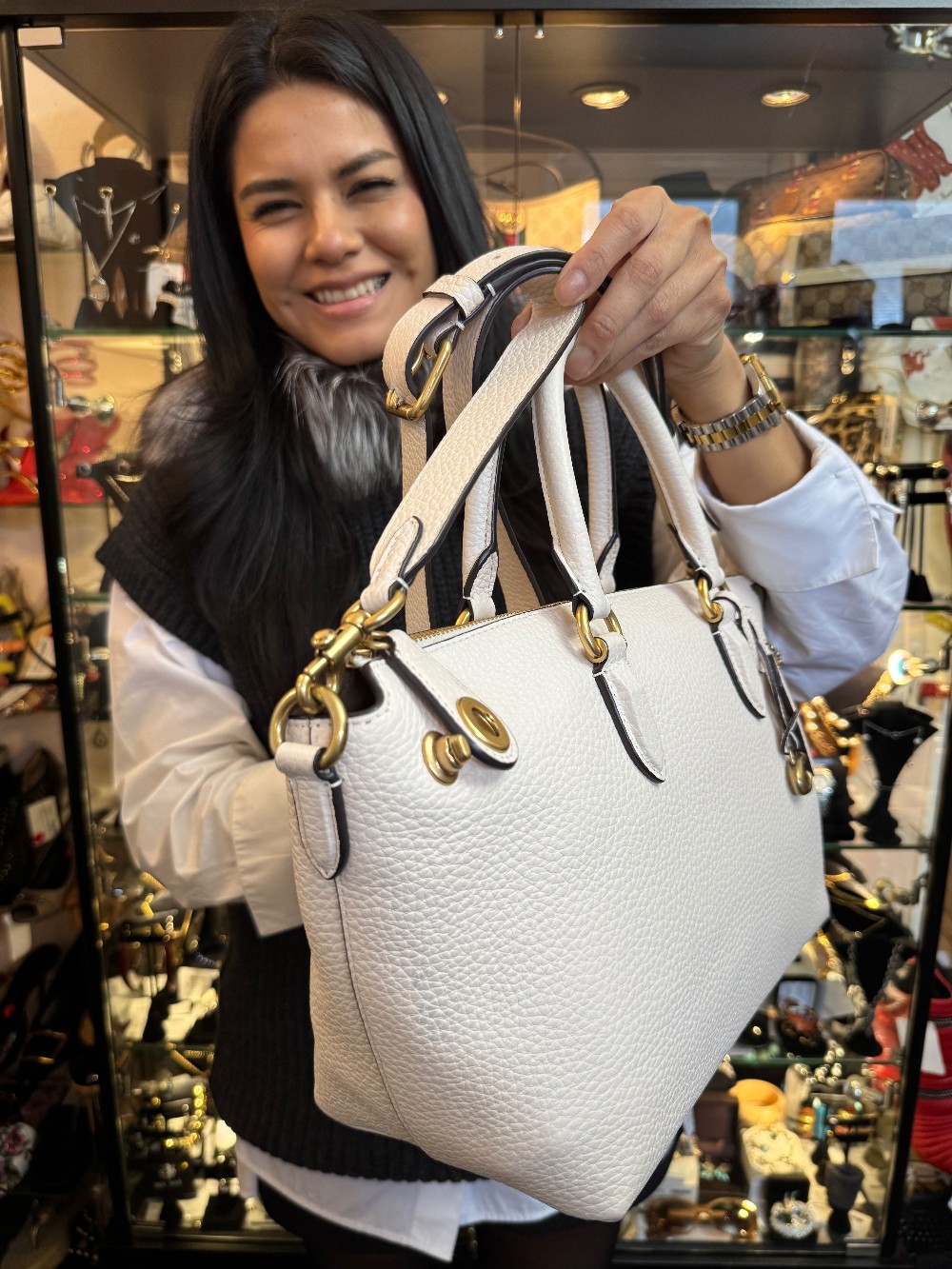 Pebbled Leather Cara Satchel W/ Crossbody Strap - Chalk