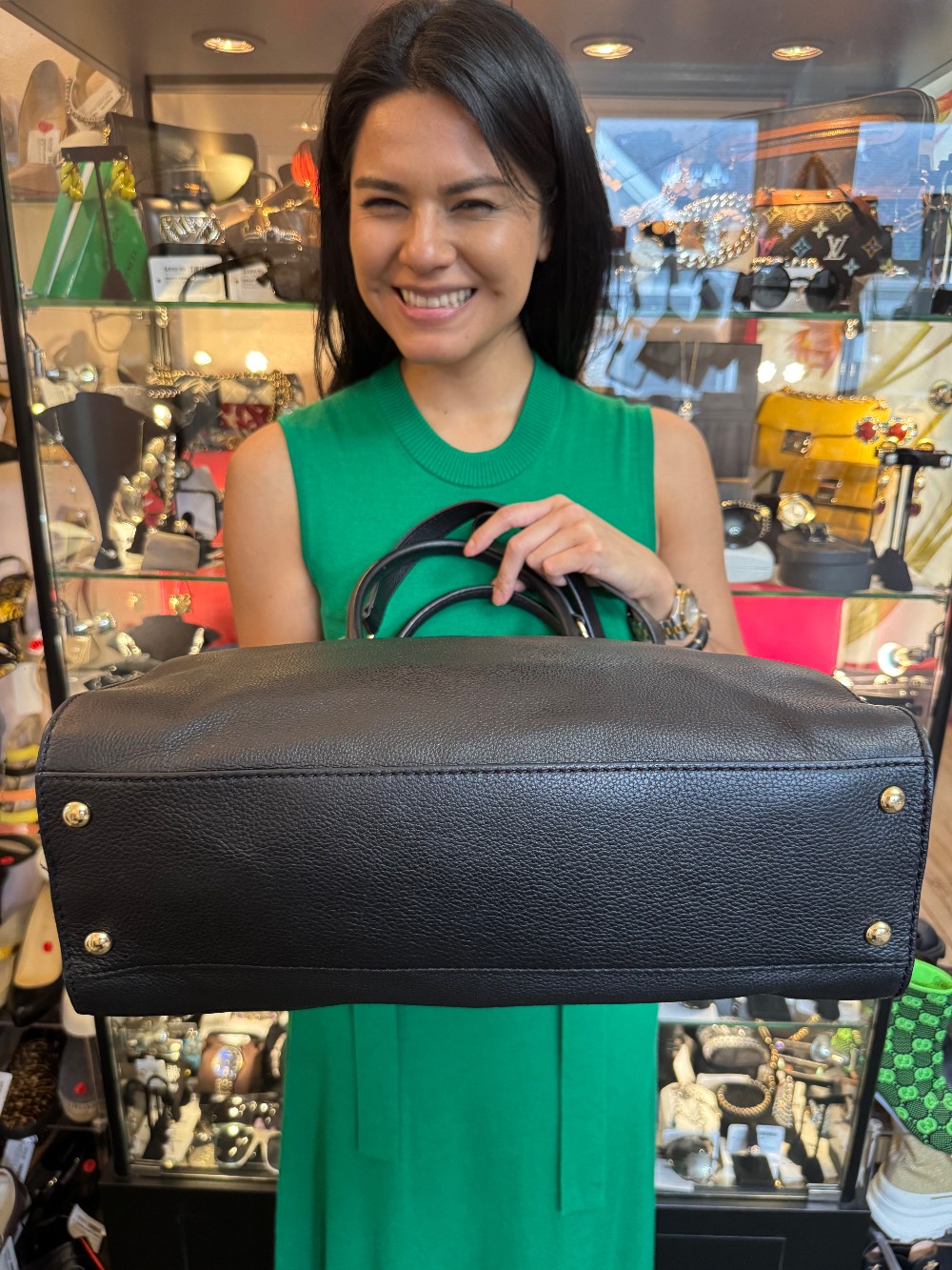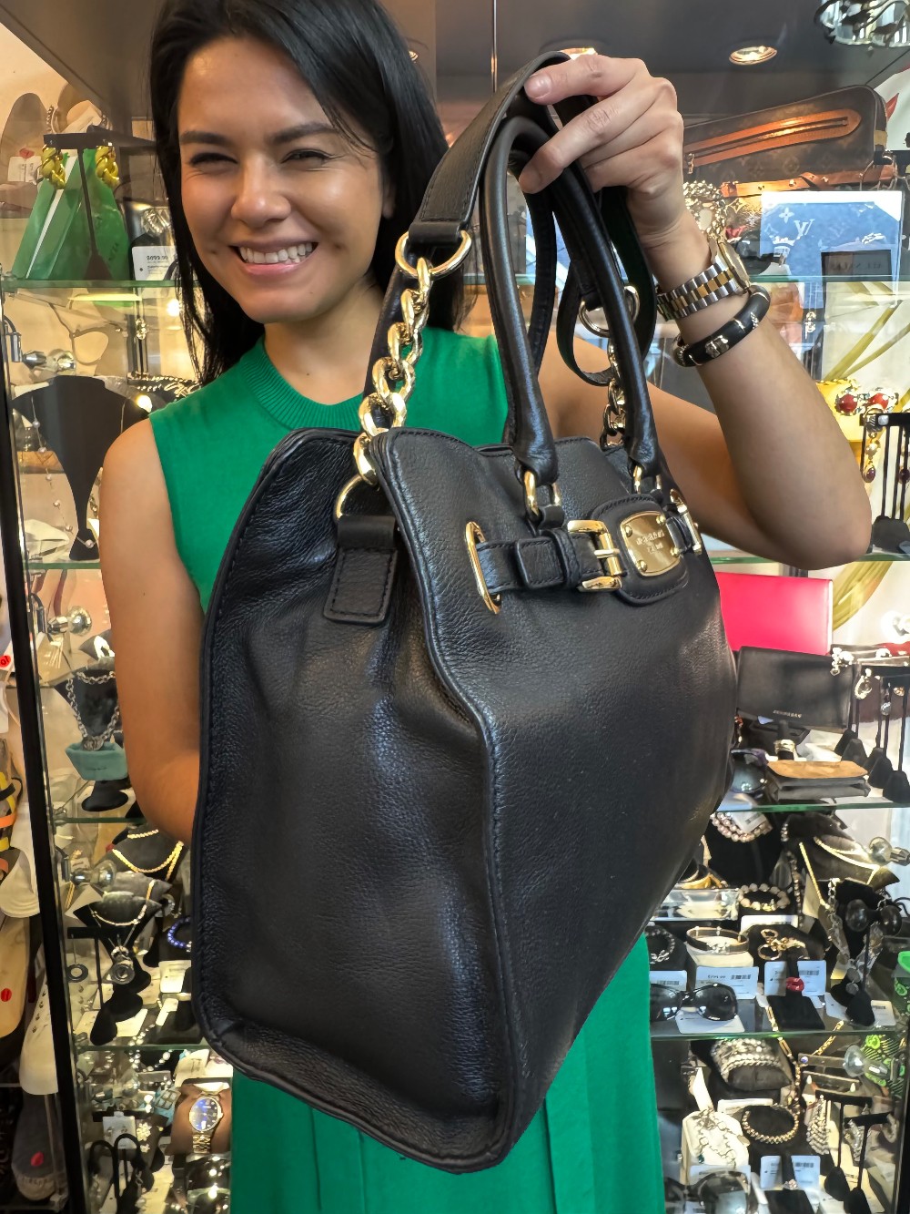 Buckle Front Leather Hamilton Chain Strap Satchel - Black / Gold Tone
