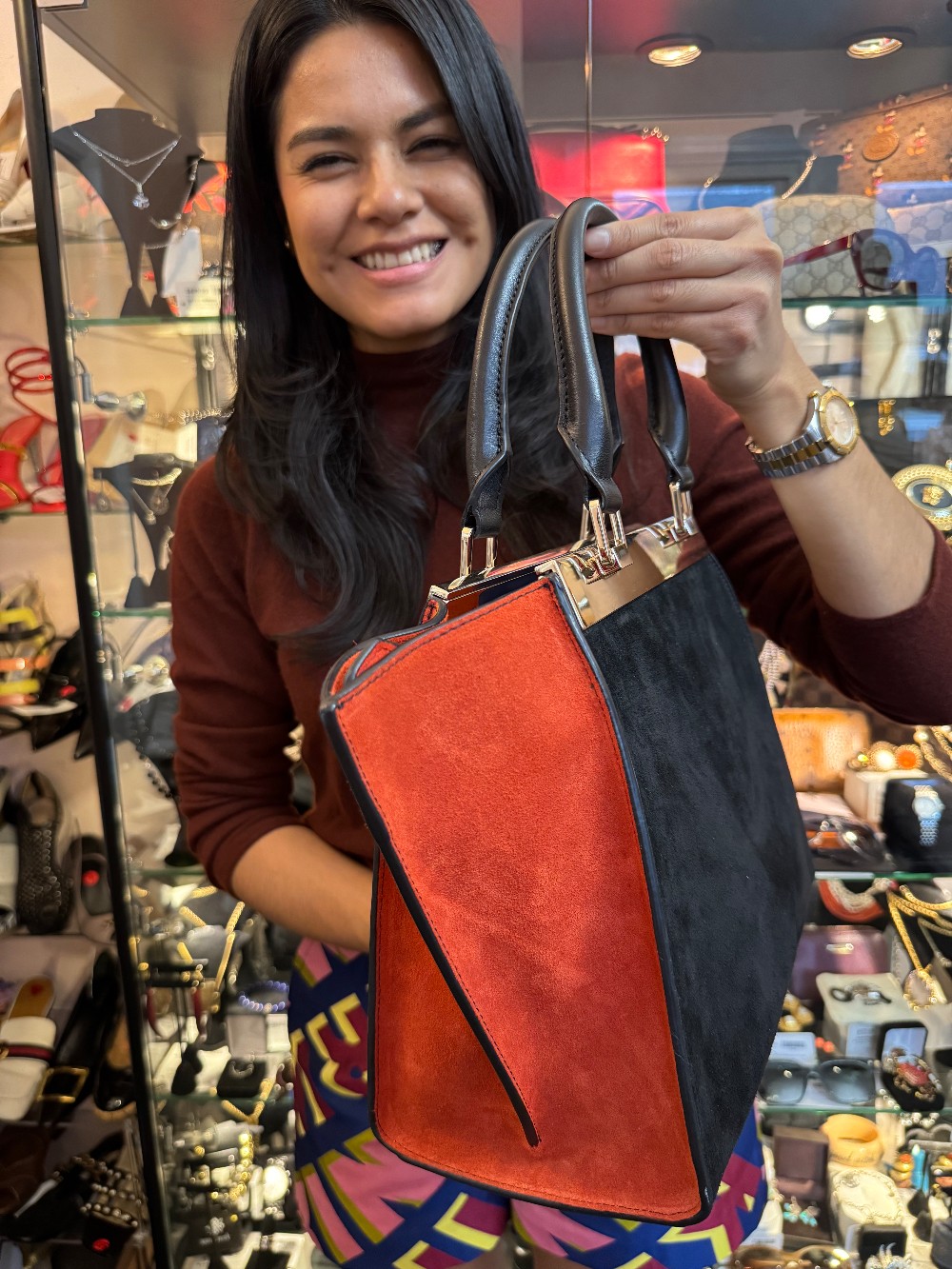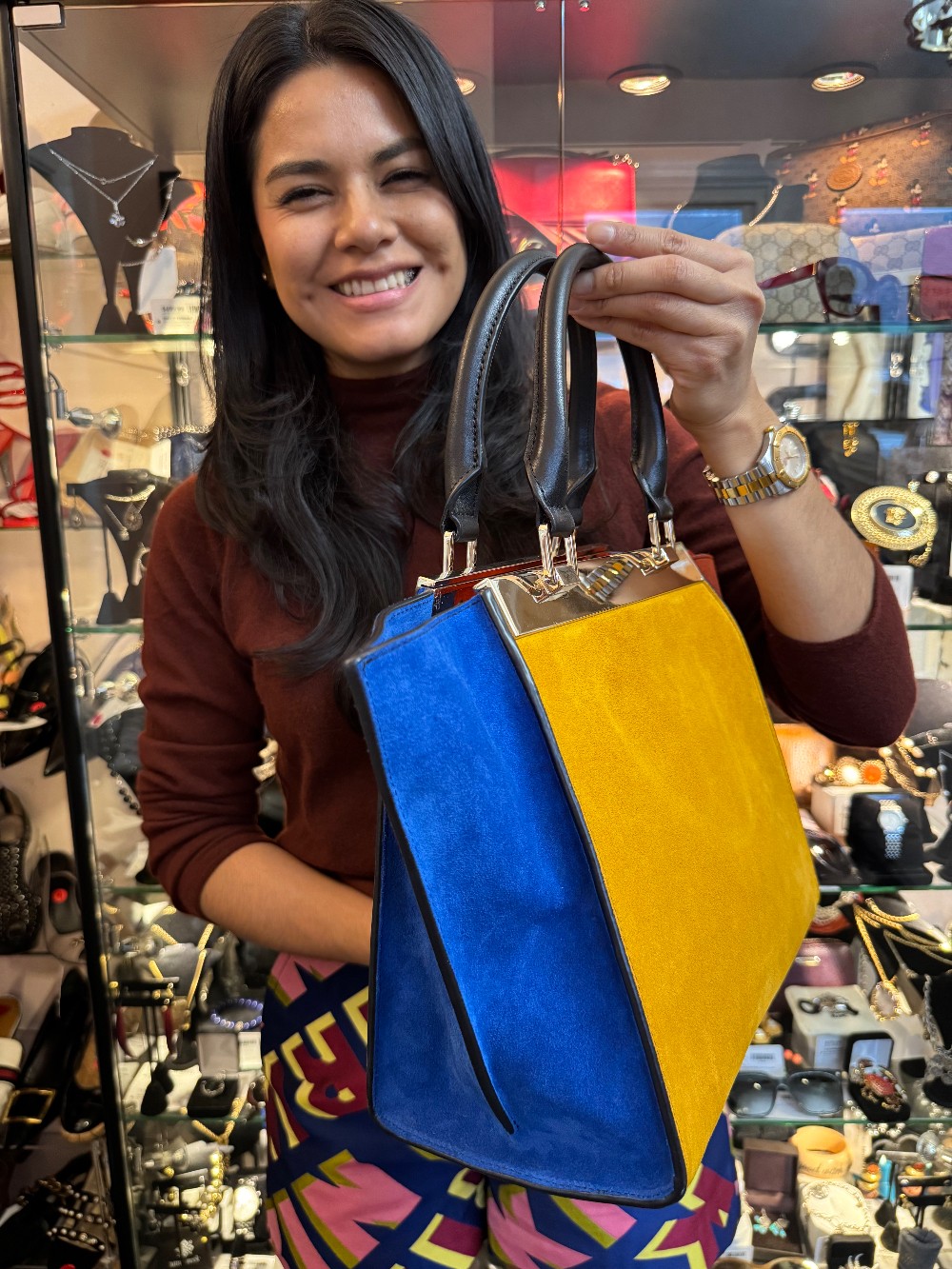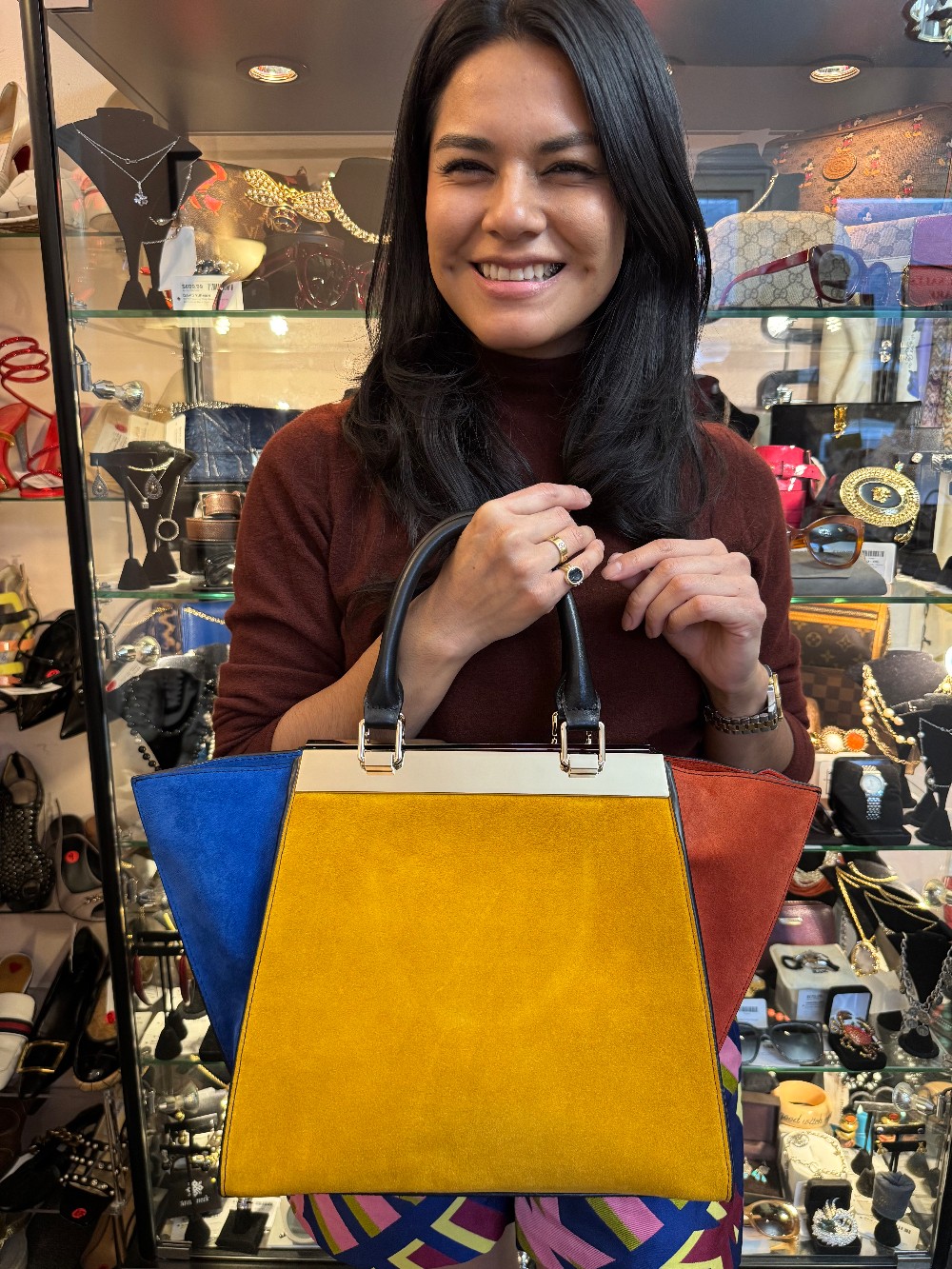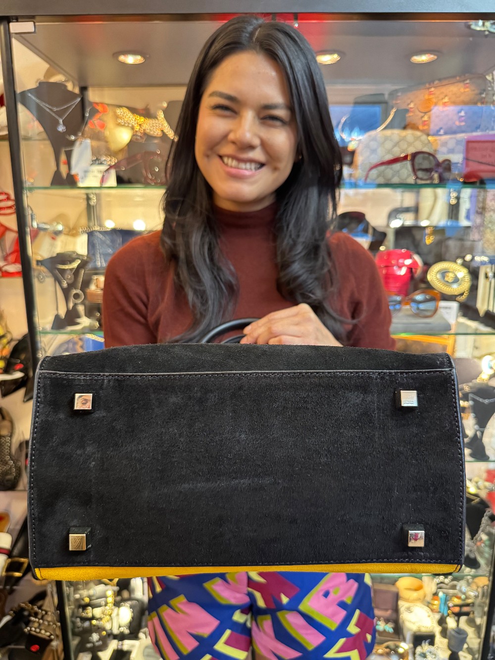 Athena Suede Colorblock Satchel - Yellow / Black / Blue / Red