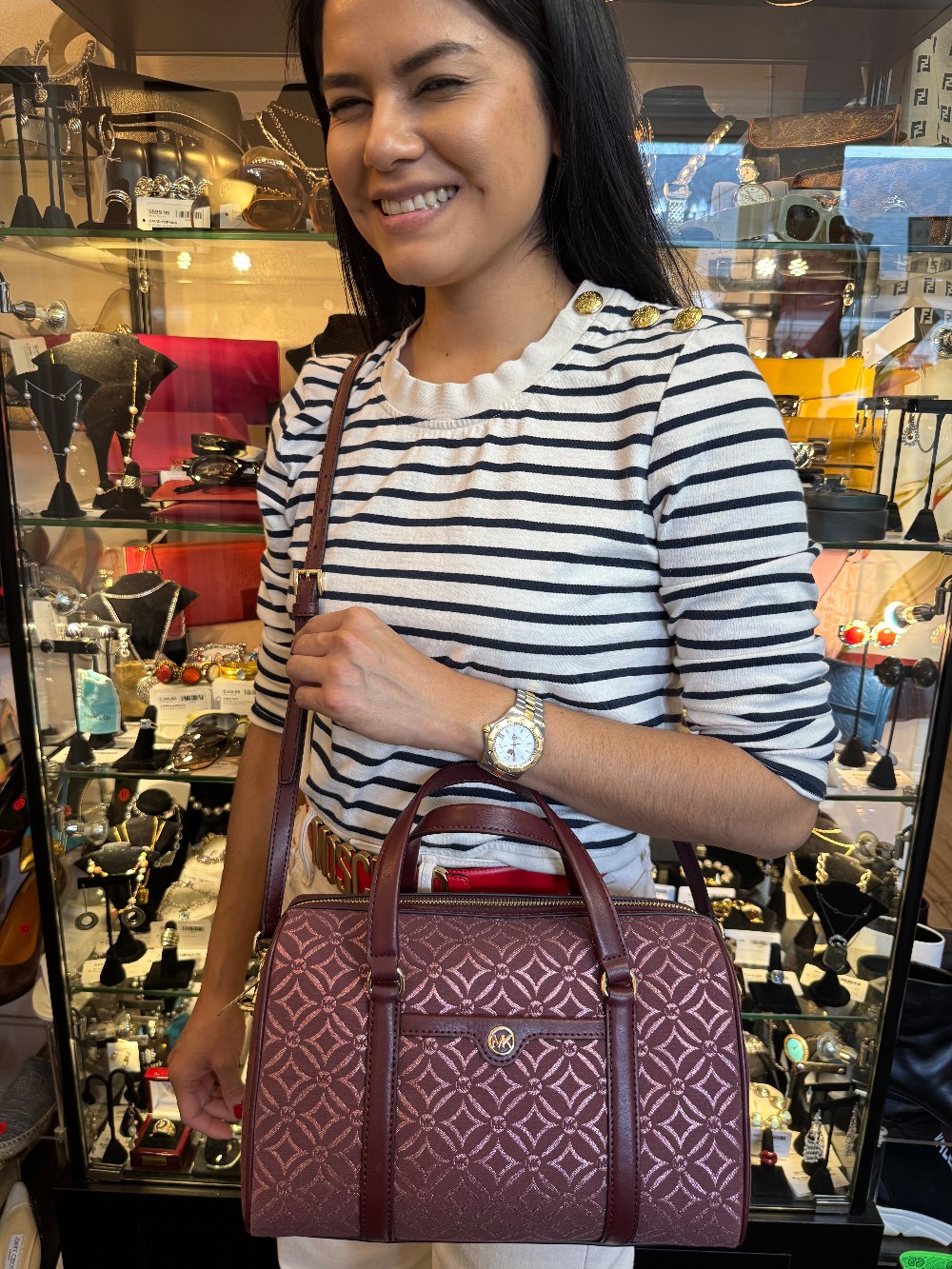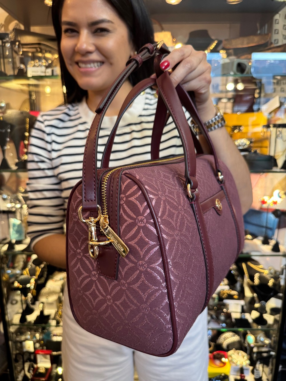 NEW W/ TAGS - Metallic Logo Print Medium Duffle Satchel - Burgundy