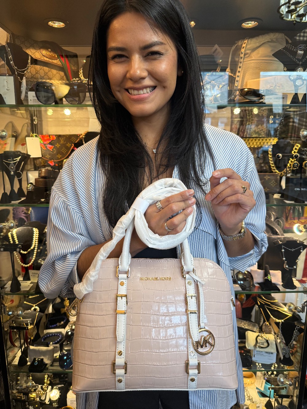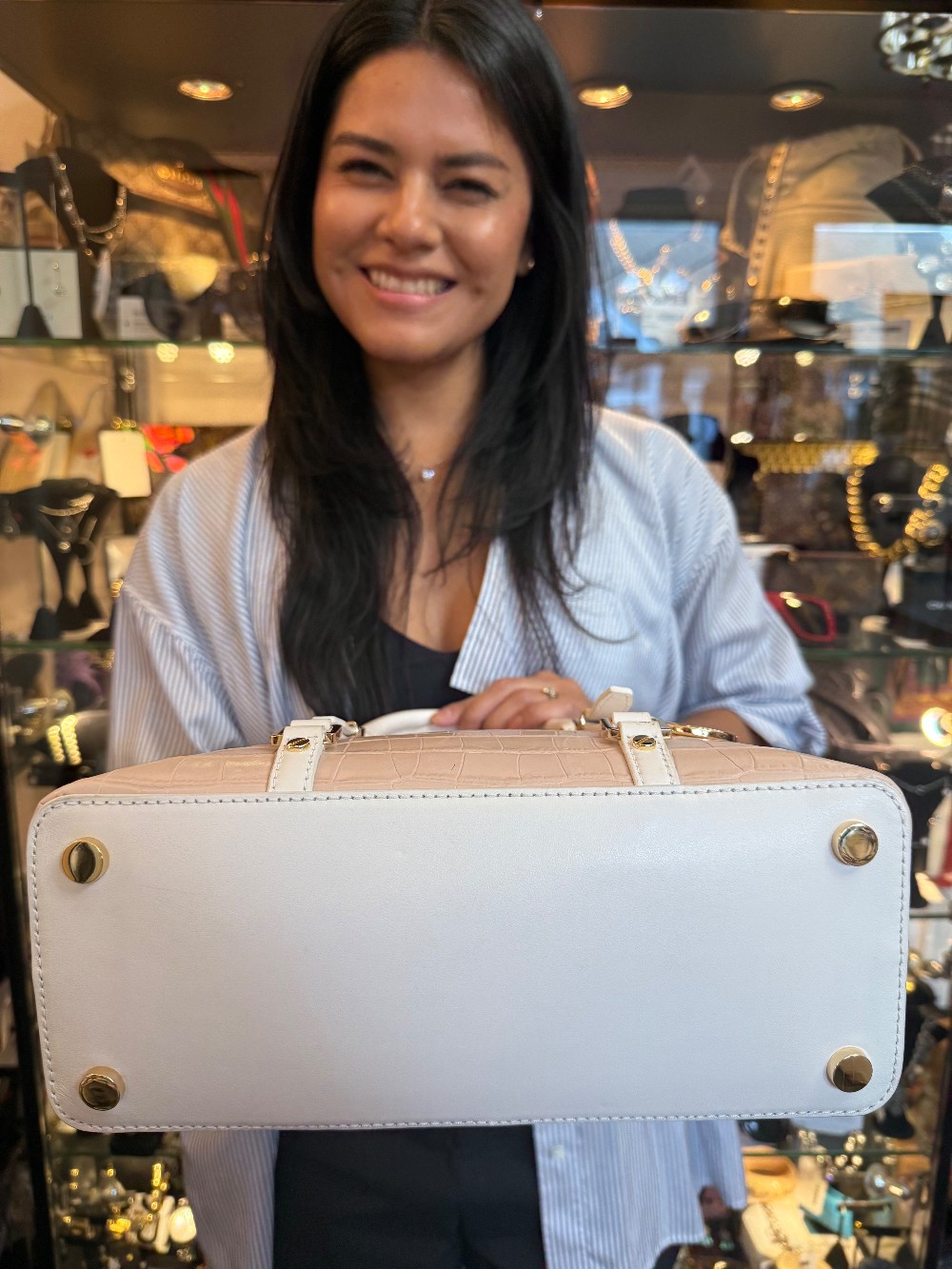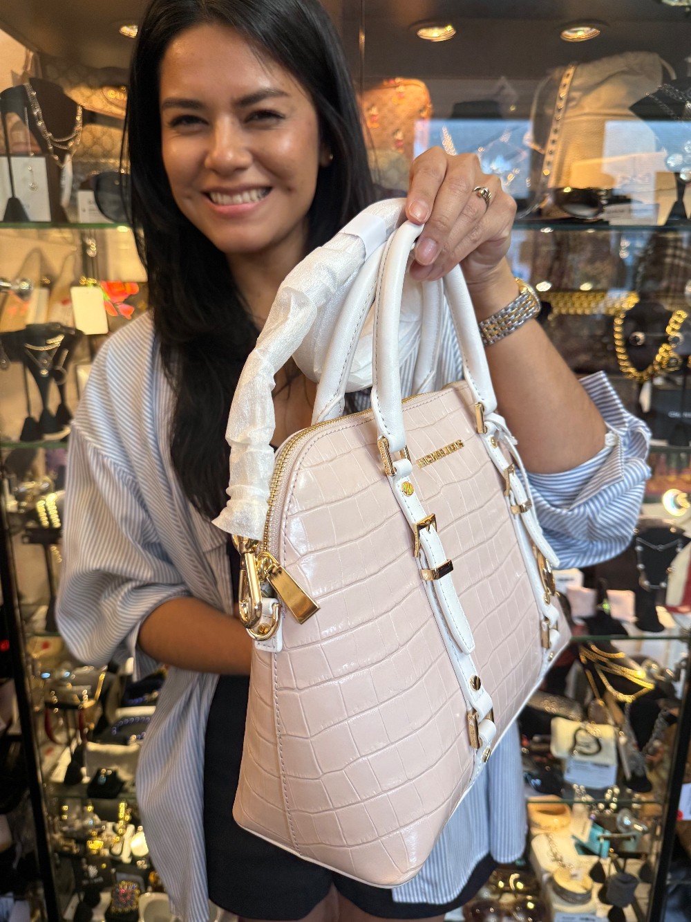 NEW W/ TAGS - Bedford Legacy Croc Embossed Dome Satchel - Pink / White
