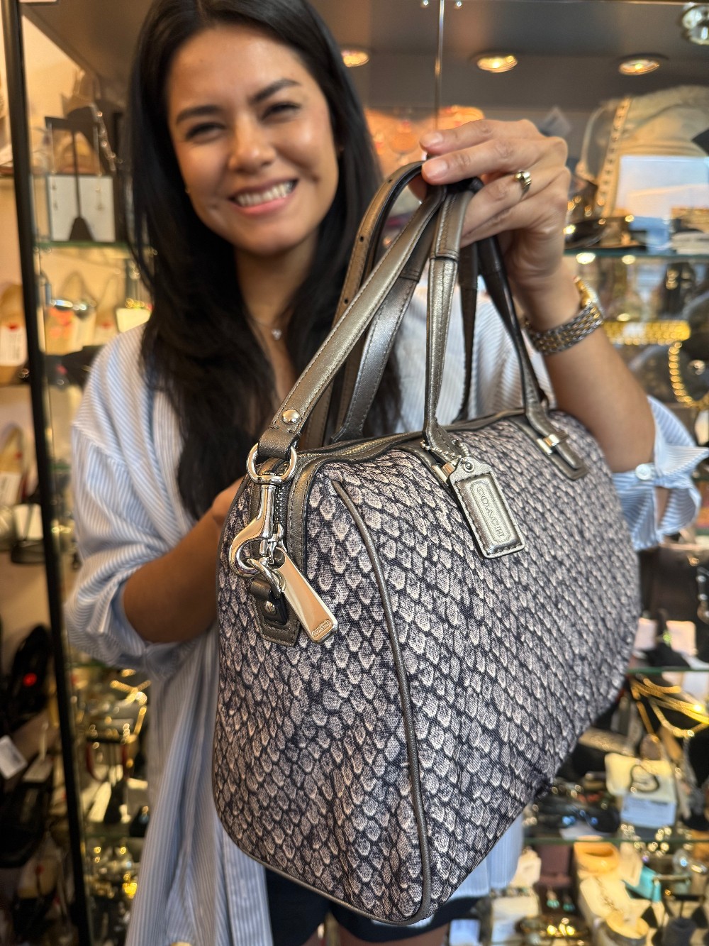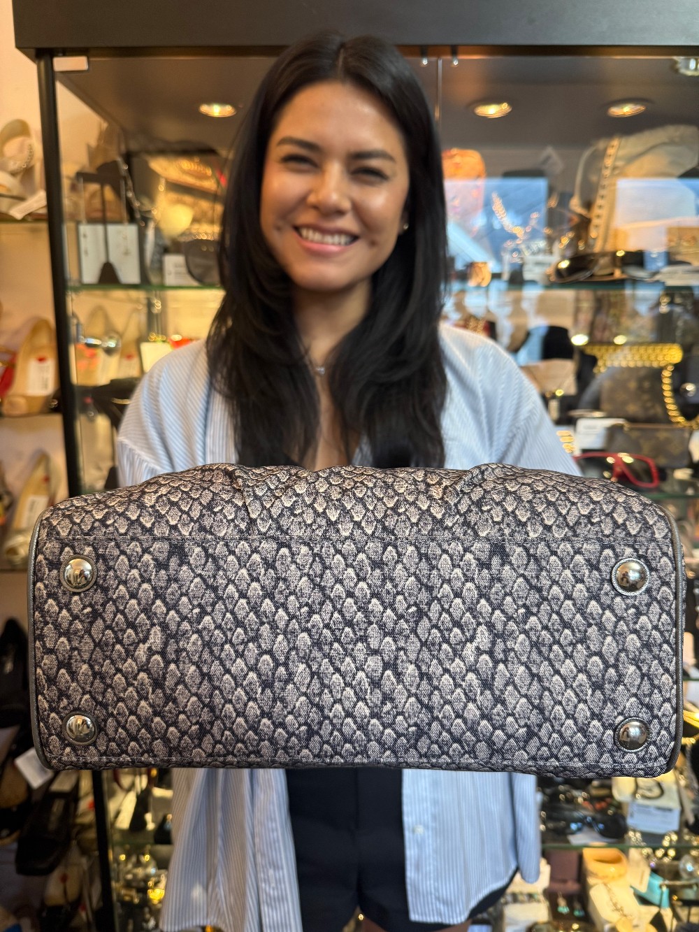Taylor Snake Print Satchel W/ Crossbody Strap - Gray/Silver Tone