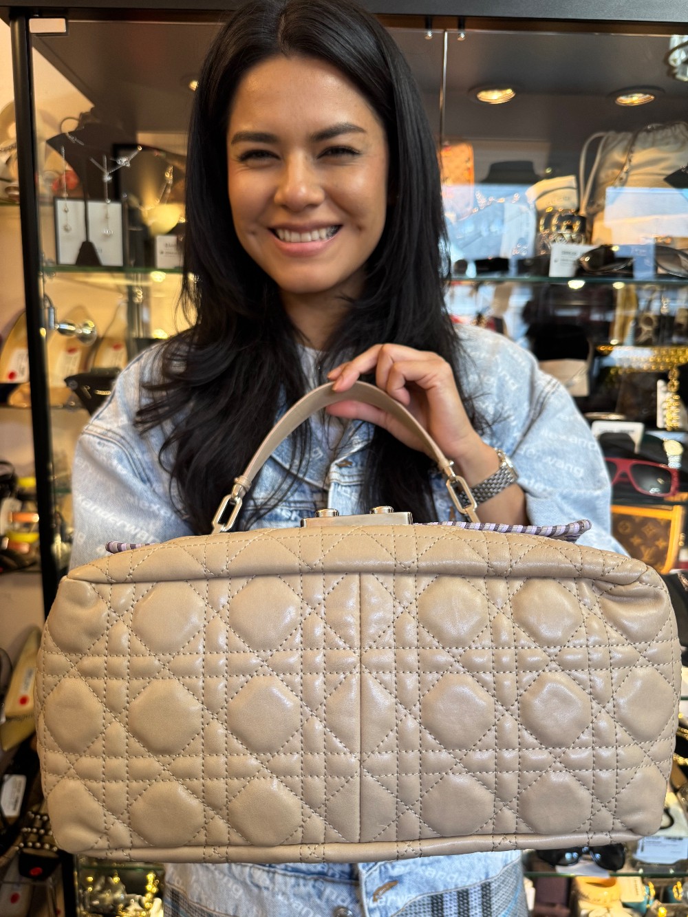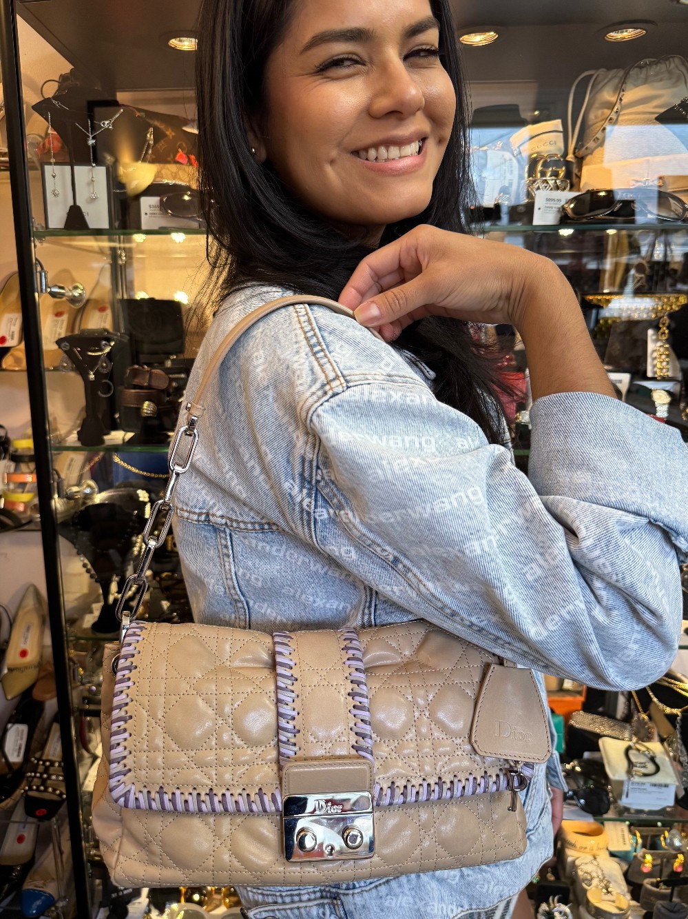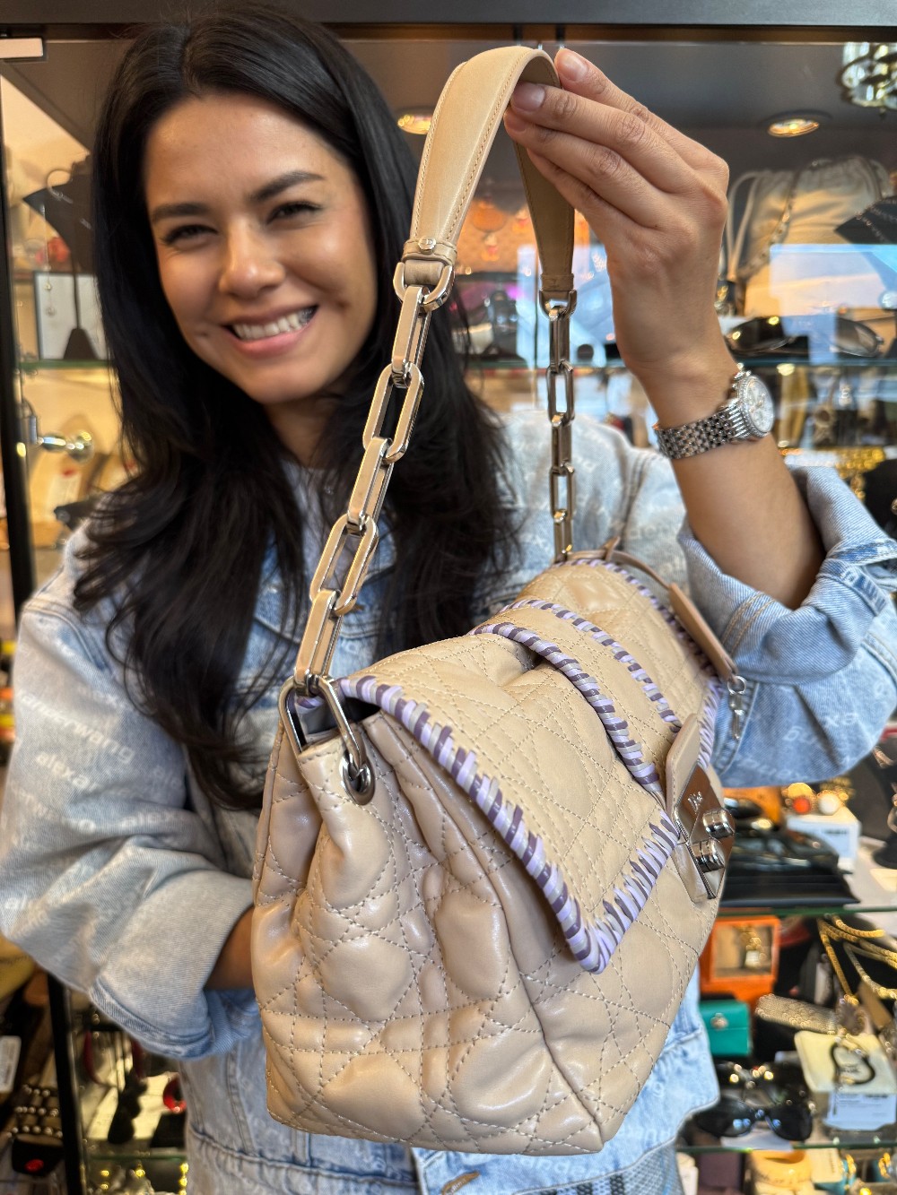 Cannage Quilted Leather New Lock Ruffle Flap Bag - Beige / Violet