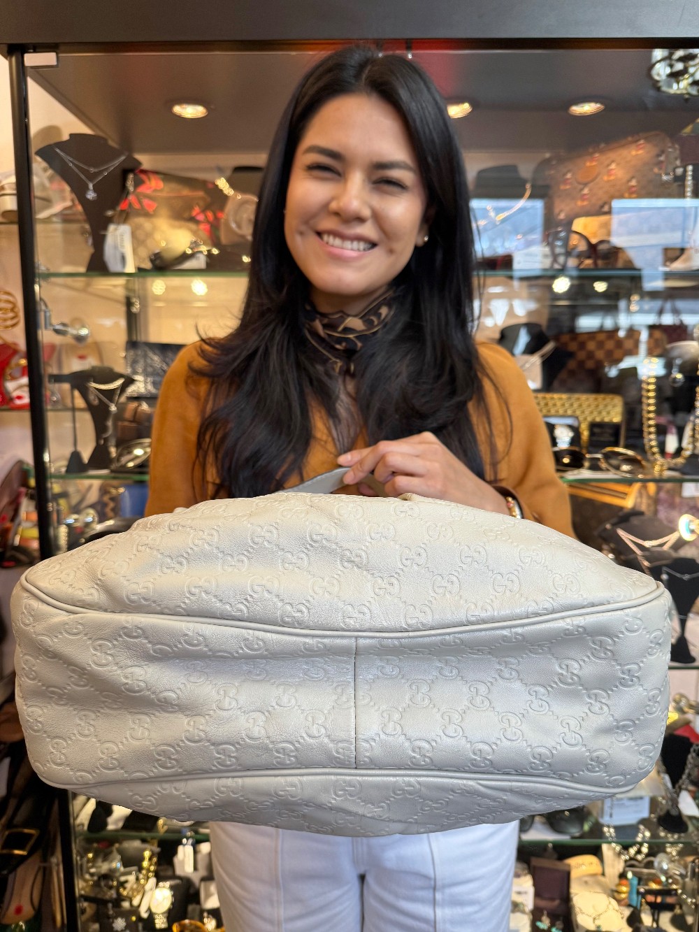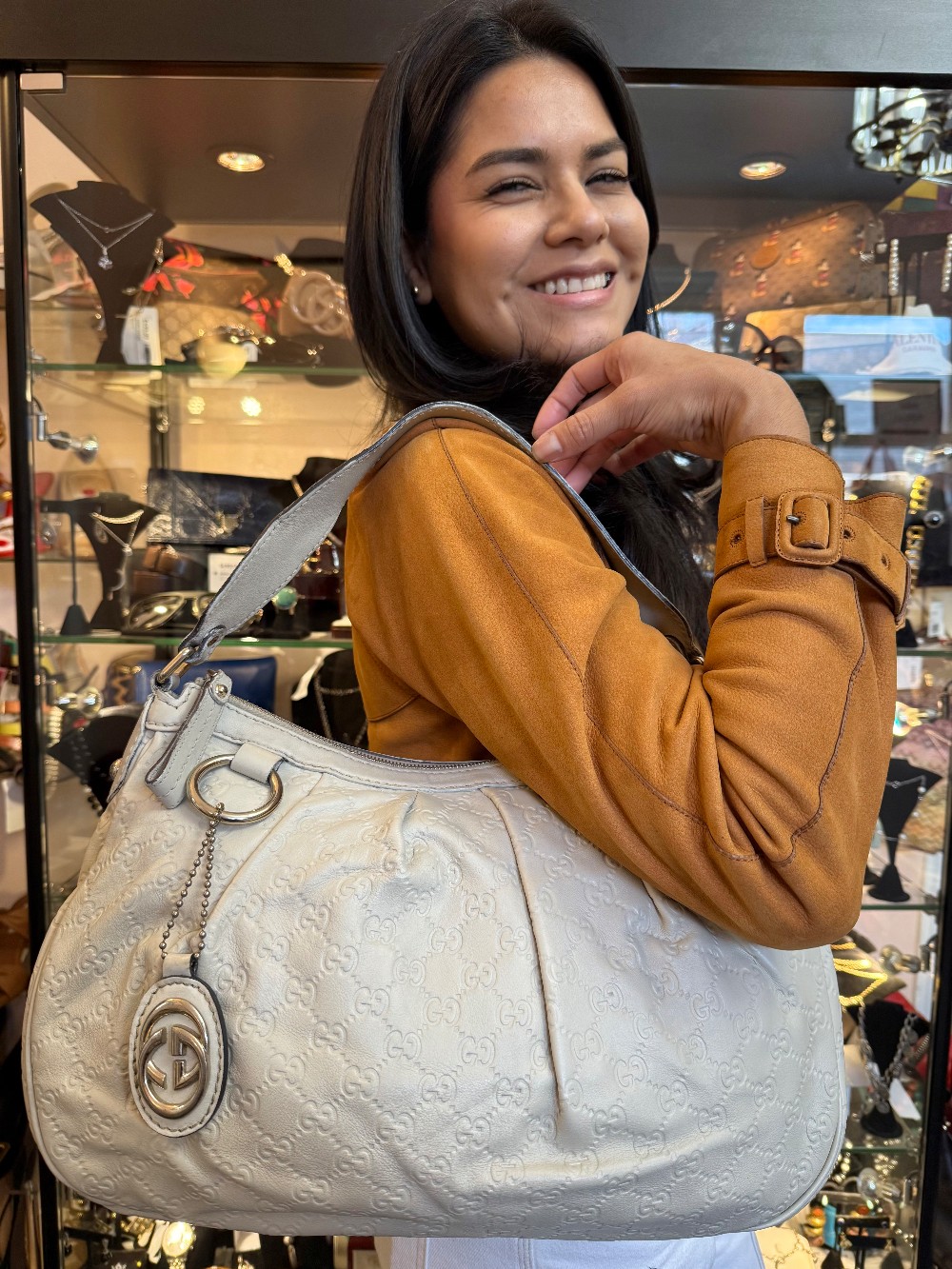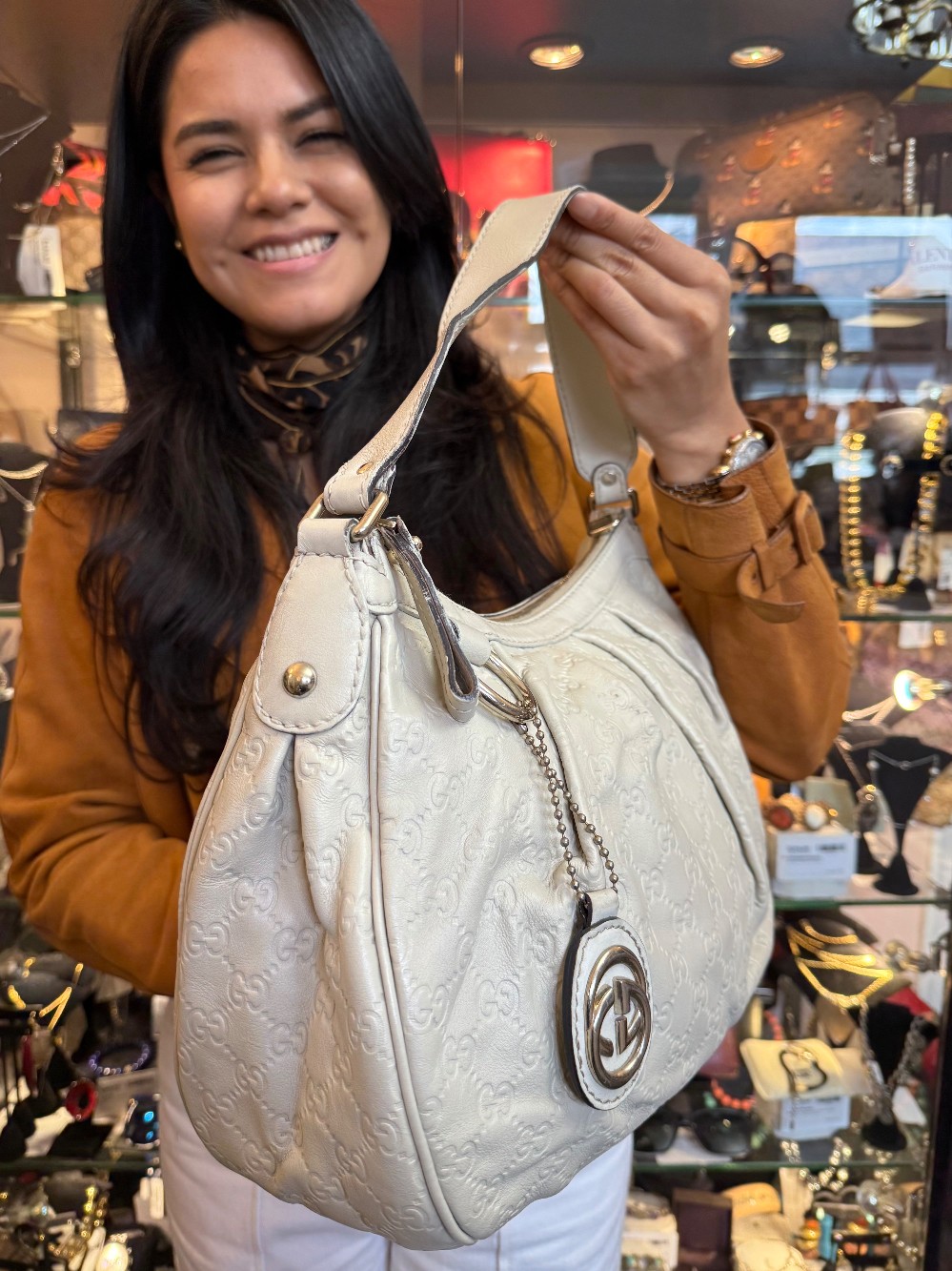 Guccissima Leather Sukey Hobo / White - AGING/WEAR /SMALL BLEMISHES/REPAINTED