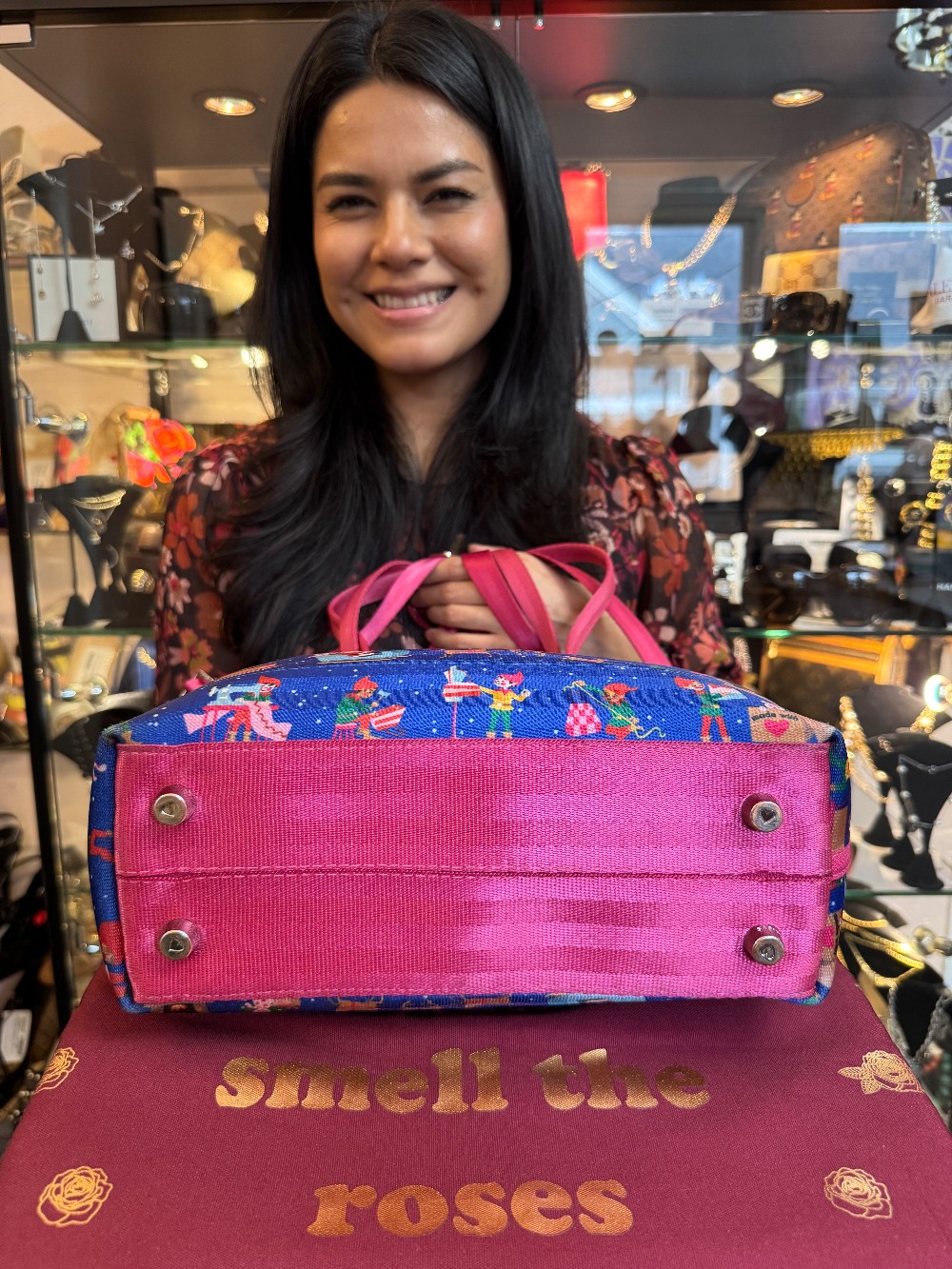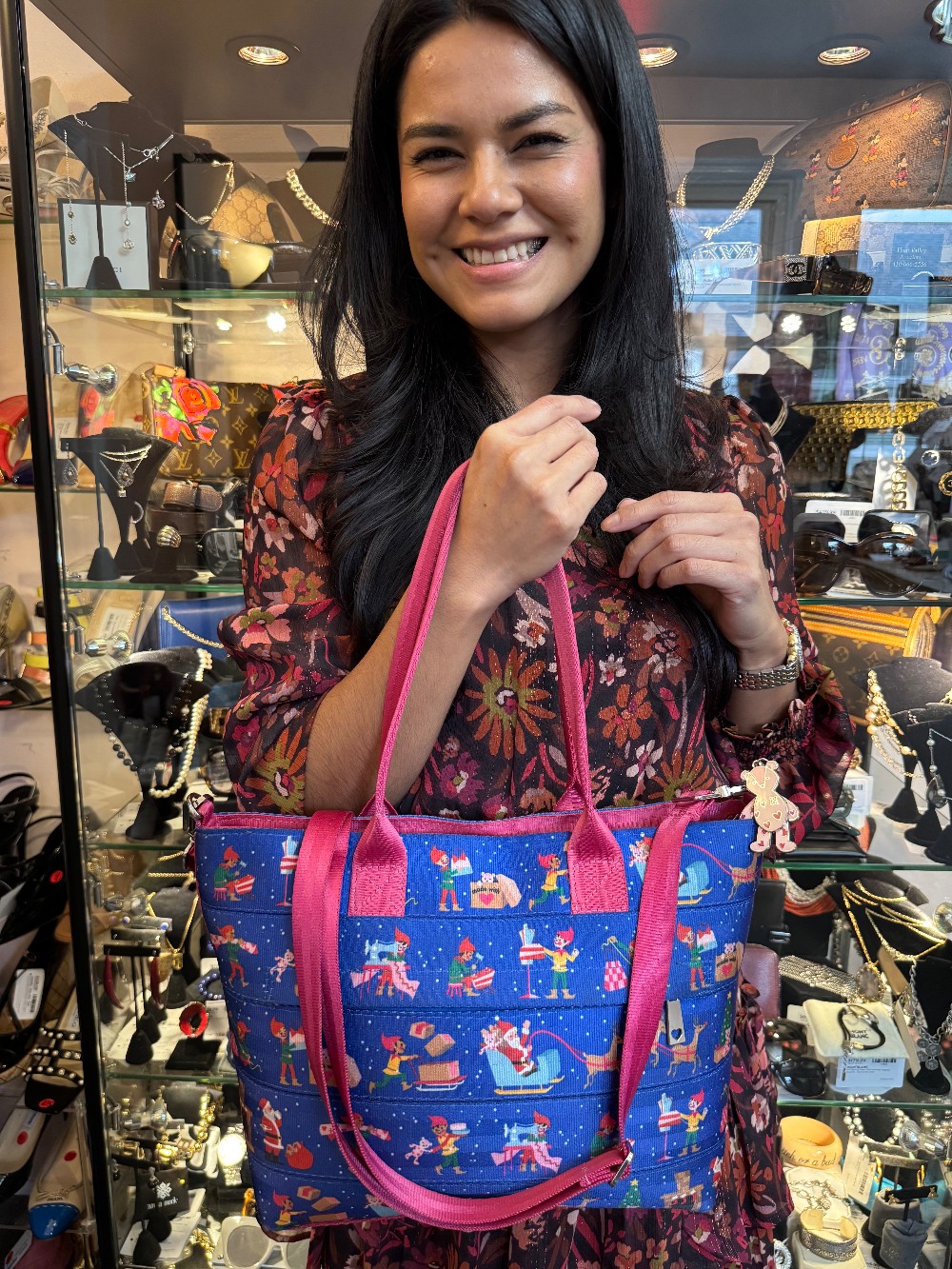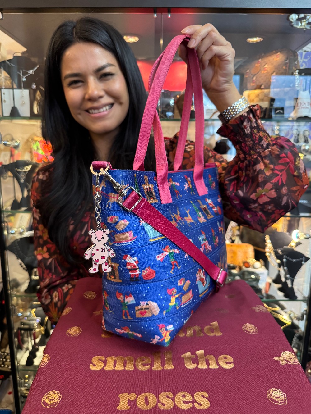 Streamline Christmas Workshop Seatbelt Shoulder Bag W/ Crossbody Strap - Blue/Red