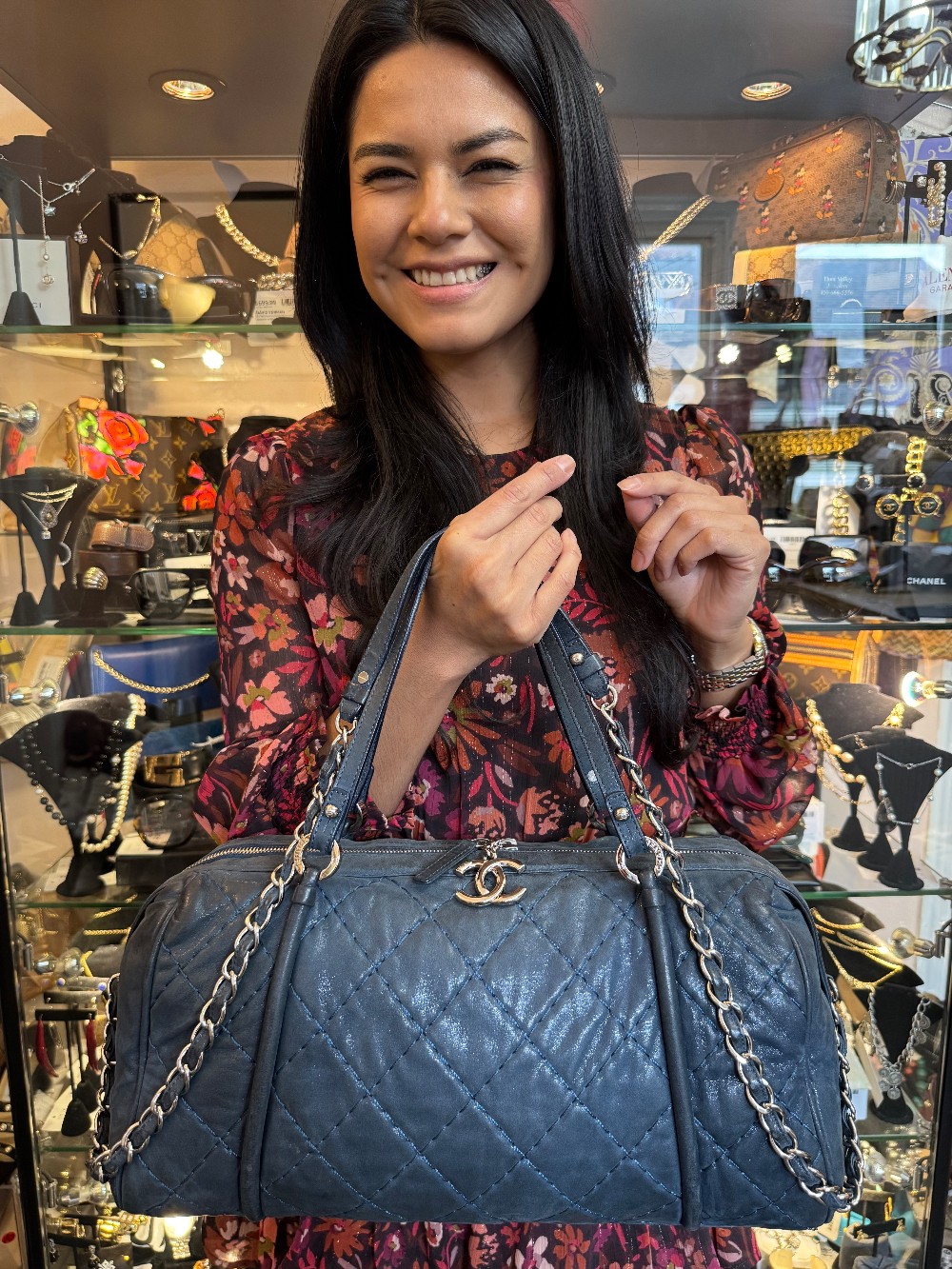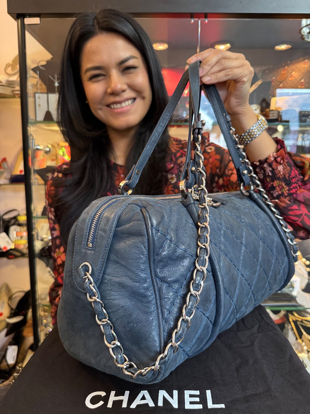 Quilted Iridescent Relax CC Bowling Bag / Blue - BLEMISHES / WEAR / DISCOLORATION