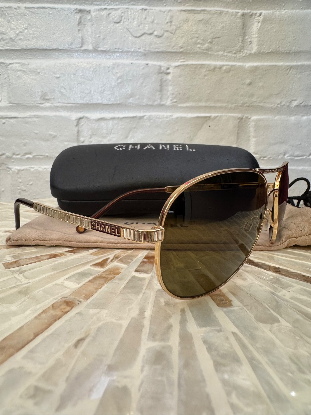 Bridged Aviator / Logo & Crystal Detail - Gold Tone / Havana - MISSING A FEW CRYSTALS / WEAR ON CASE