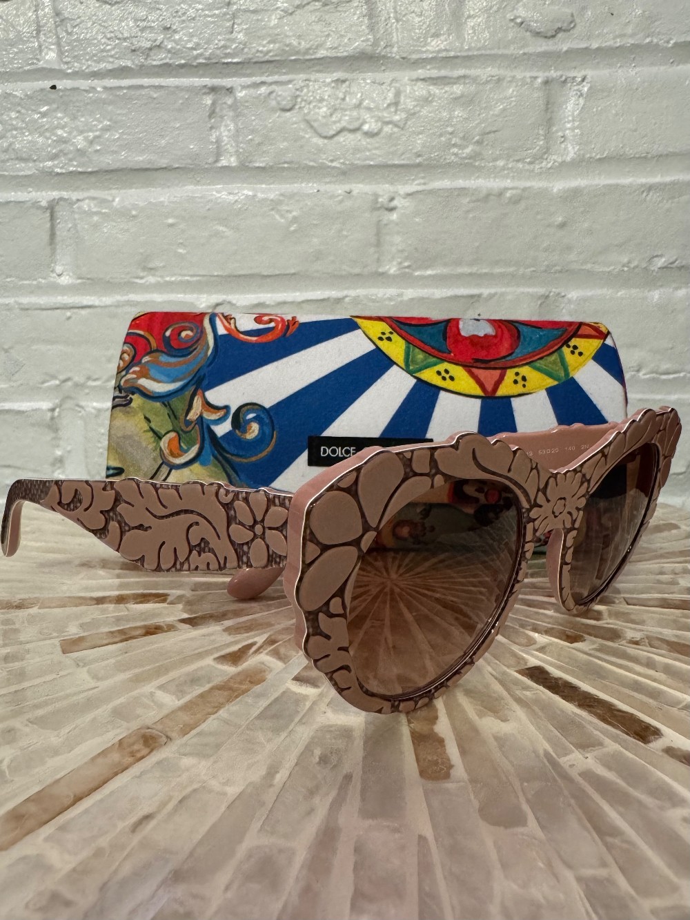 Cat Eye Sunglasses W/ Floral Brocade Frame = Rose Gold Tone - WIDE FIT
