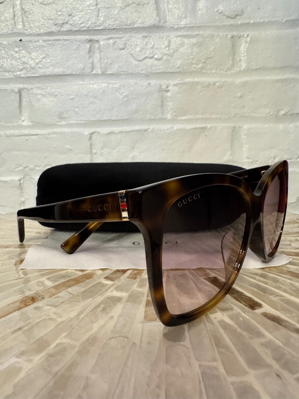Oversized Cat-Eye / Logo & Stripe Detail - Havana