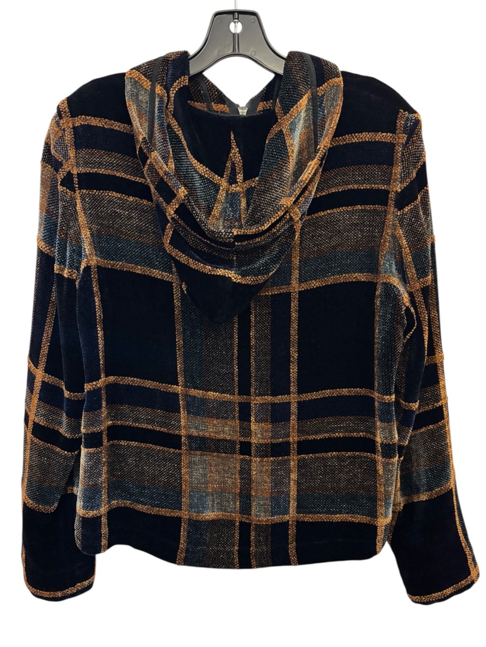Artisan Handwoven Hooded Zip Up / Plaid - Black/Blue/Brown/Orange