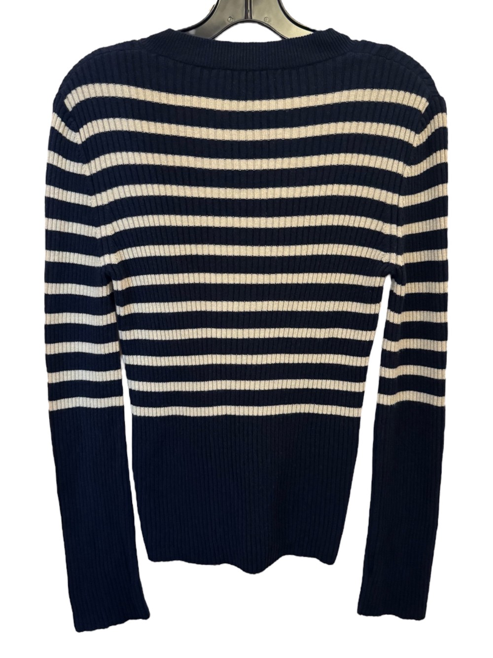 Striped V Neck Rib Knit Cashmere Blend Sweater - Navy / Tan