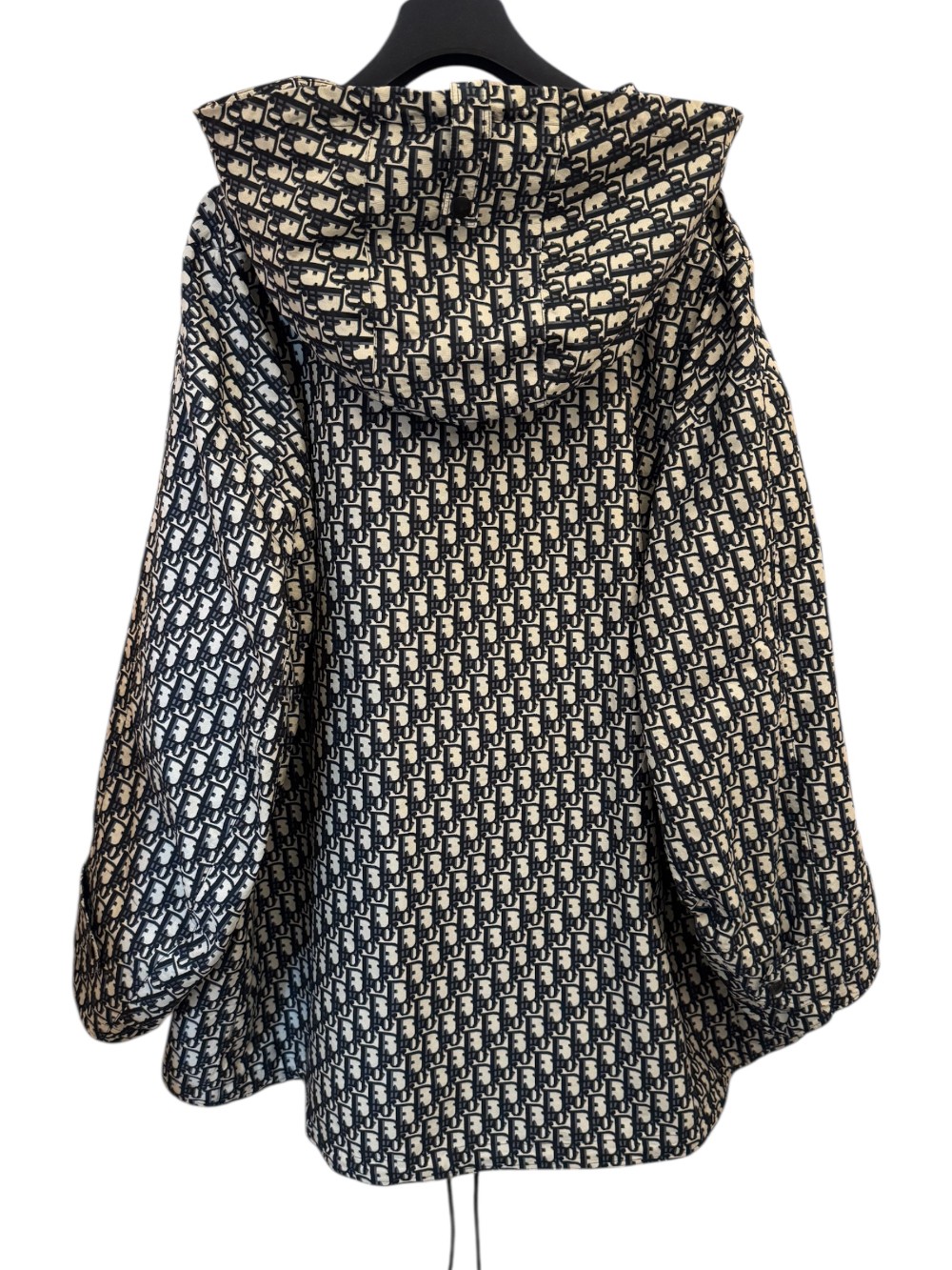 Hooded Anorak - Blue and Ecru Technical Taffeta Jacquard with Dior Oblique Motif