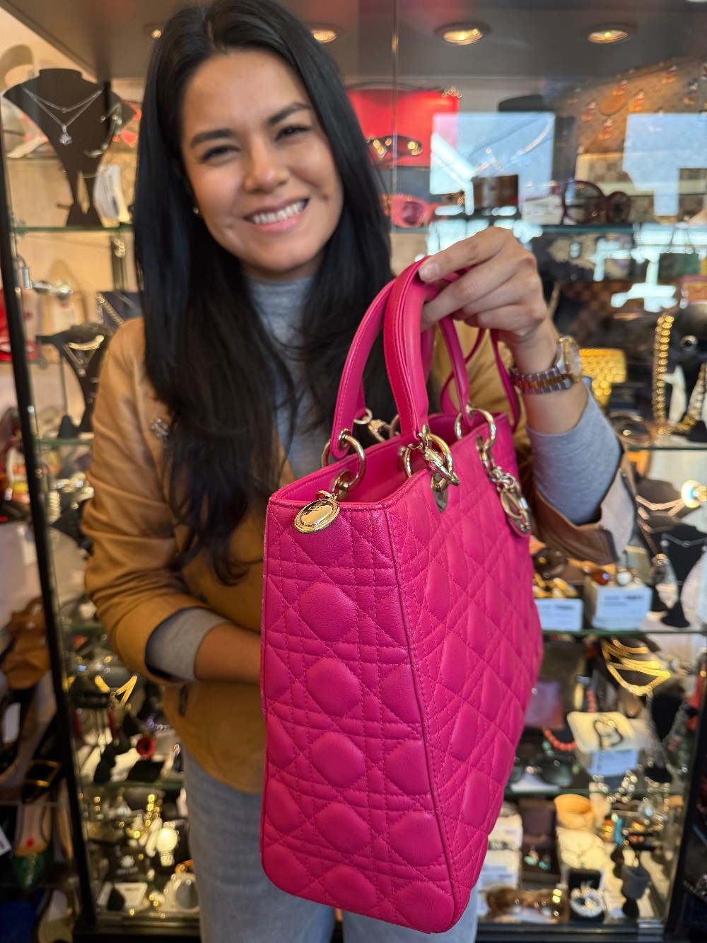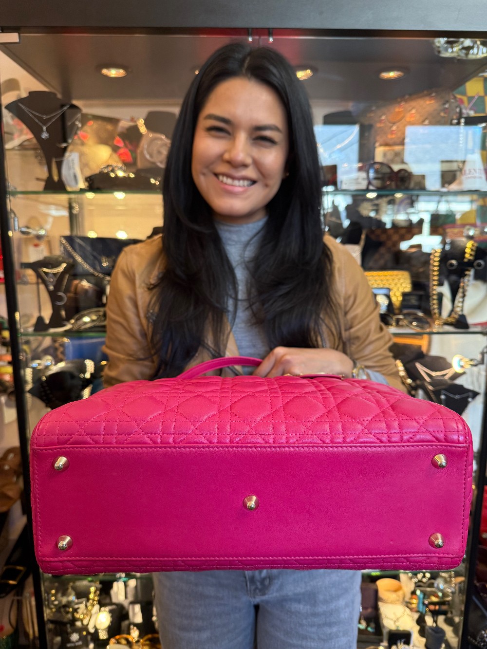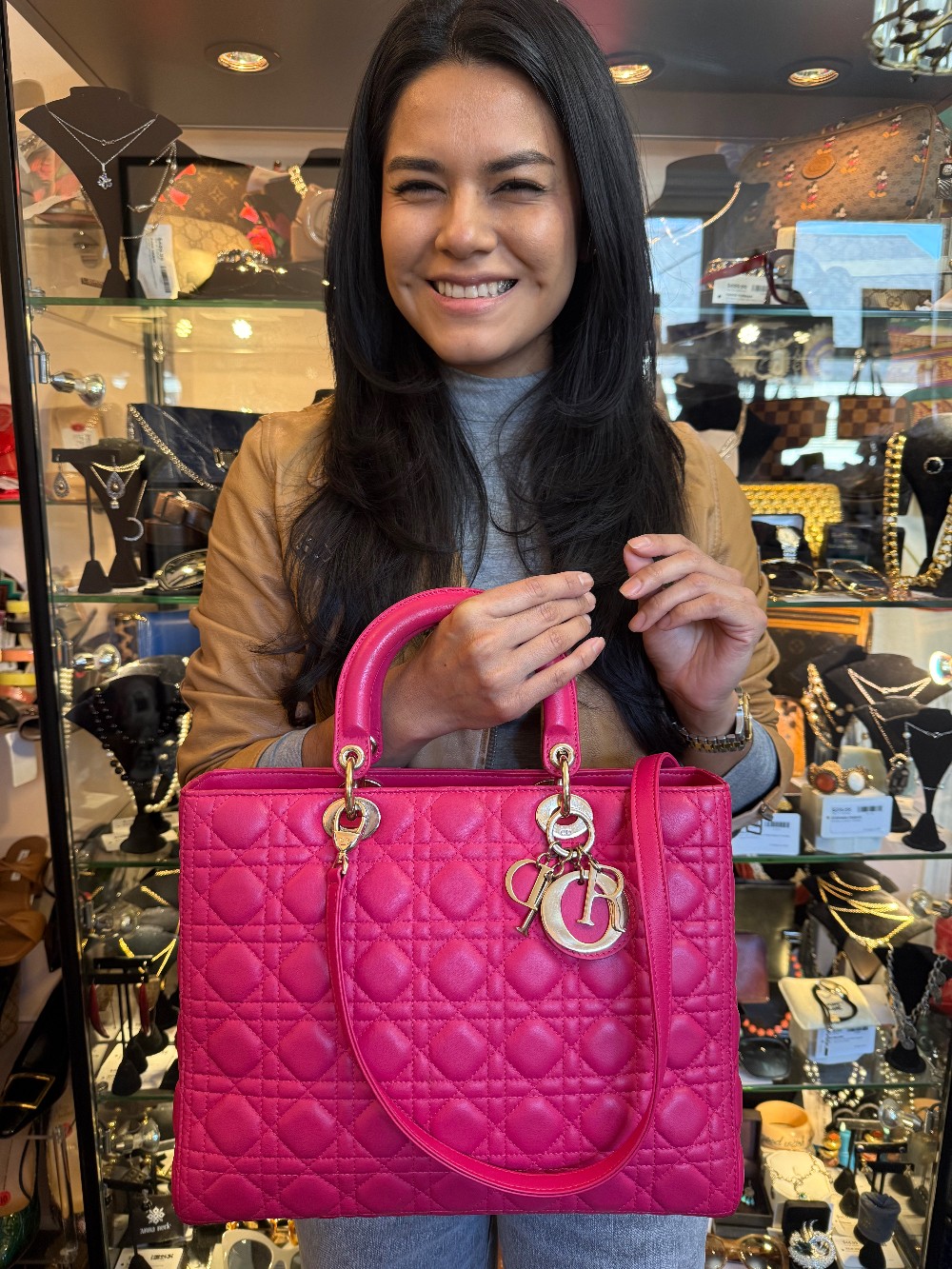 Large Lady Dior / Fuchsia Cannage Lambskin