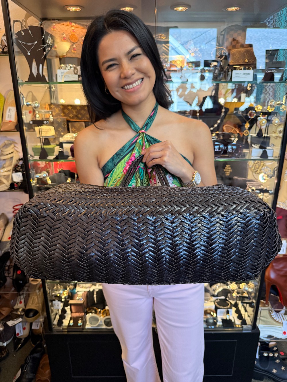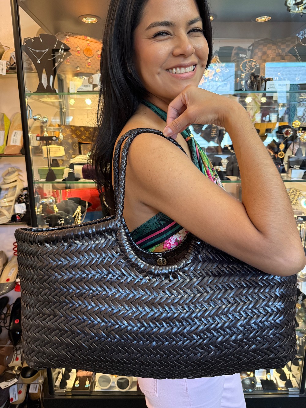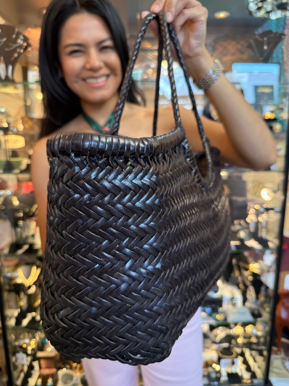 Nantucket Woven Calf Leather Large Tote - Black