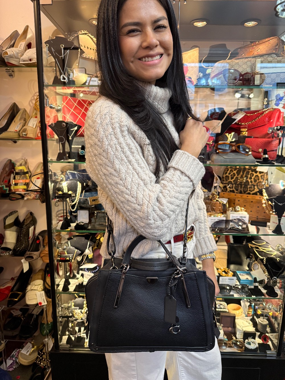 Leather Tote W/ Crossbody Strap - Black/Gunmetal