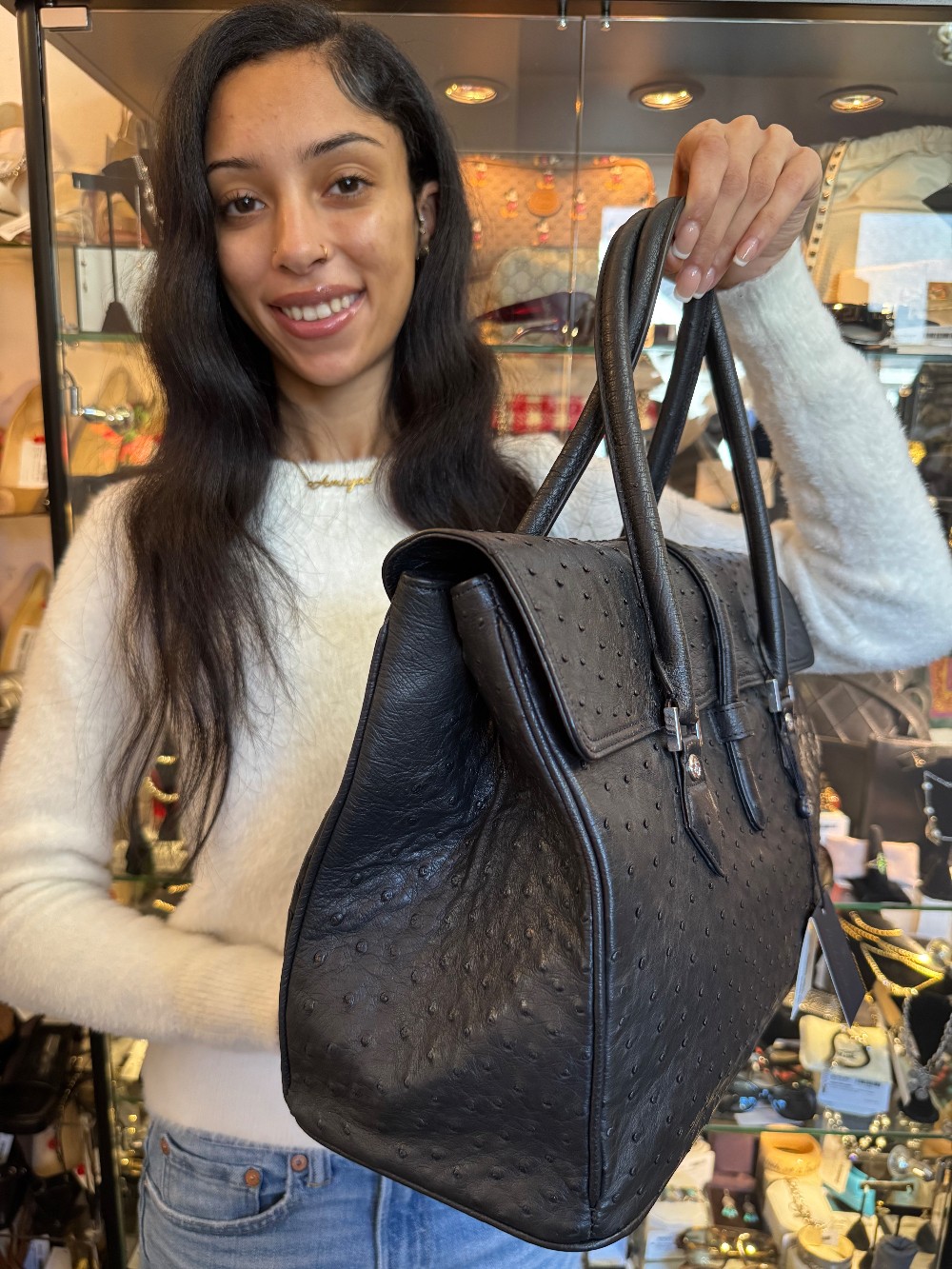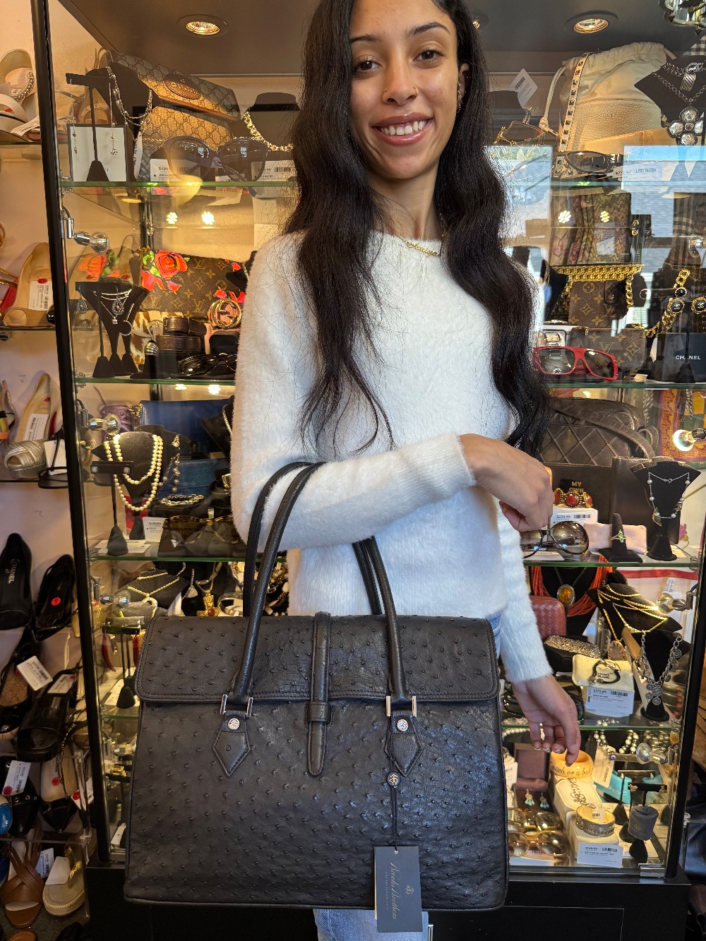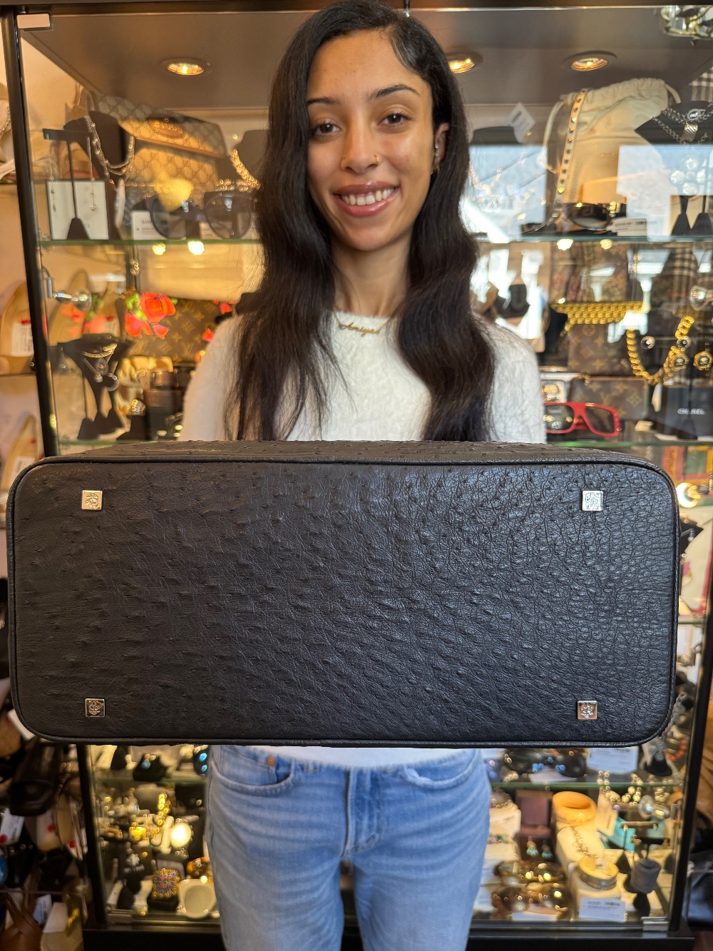 NEW W/ TAGS - Ostrich Leather Double Handle Tote / Black