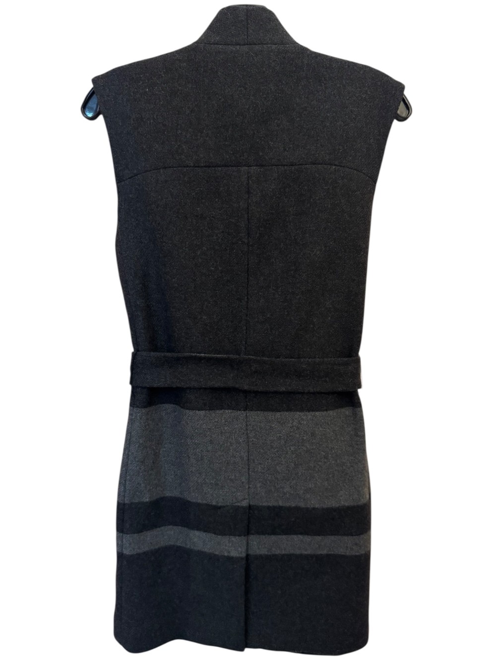 Wool Blend Extended Length Belted Vest W/ Stripe - Grey/Charcoal