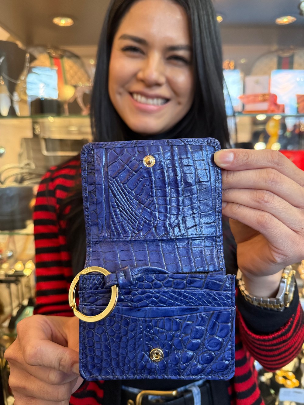 Croc Embossed Leather Coinpurse/Wallet - Blue