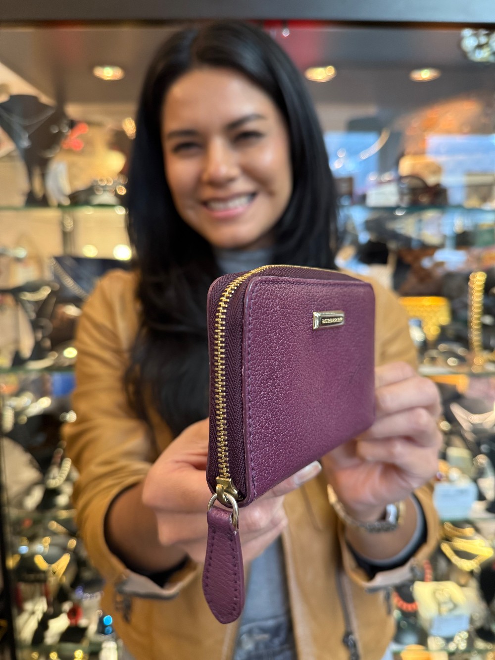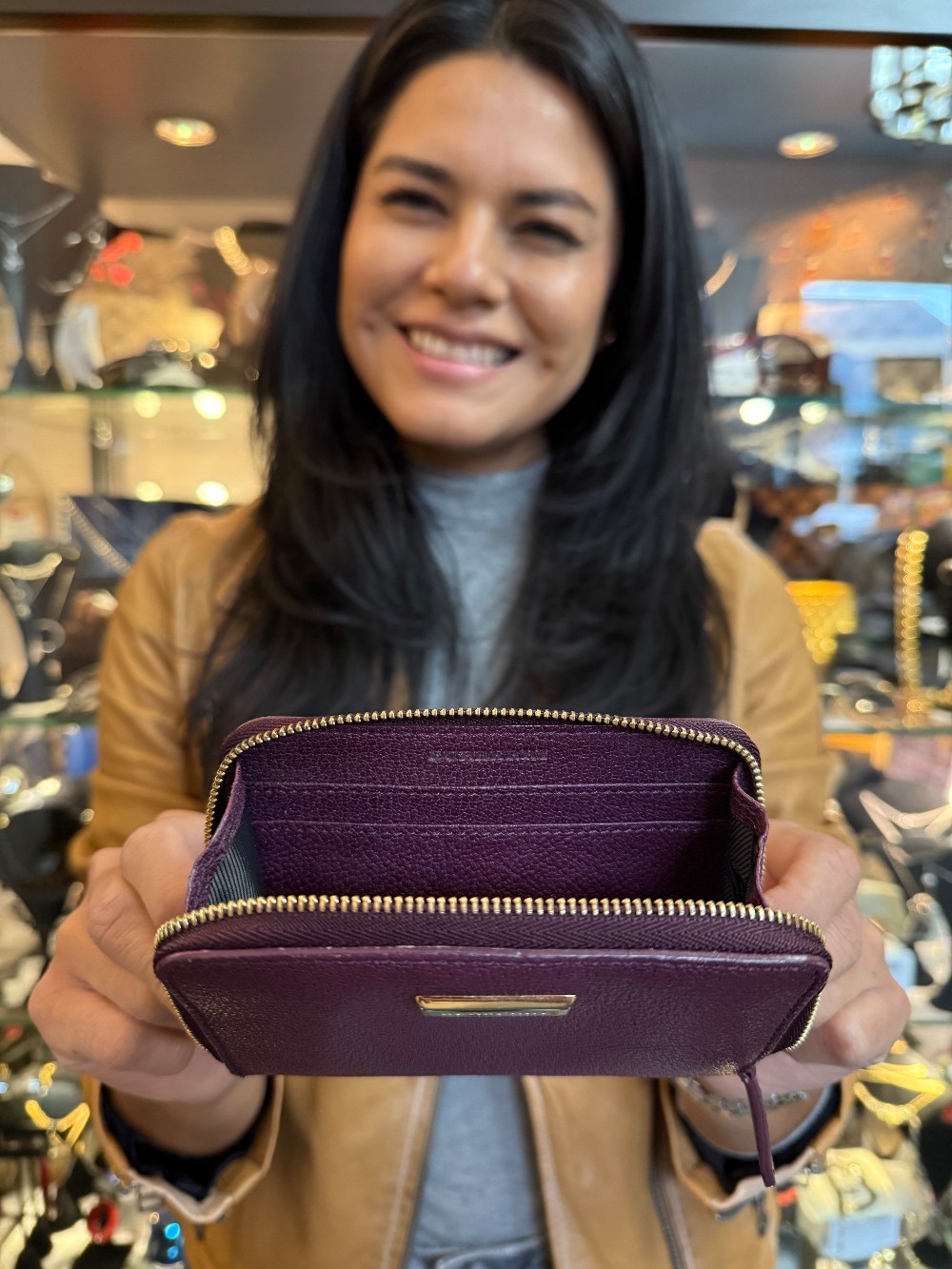 Small Zip Around Coinpurse/Card Wallet - Bordeaux - SLIGHT AGING/WEAR