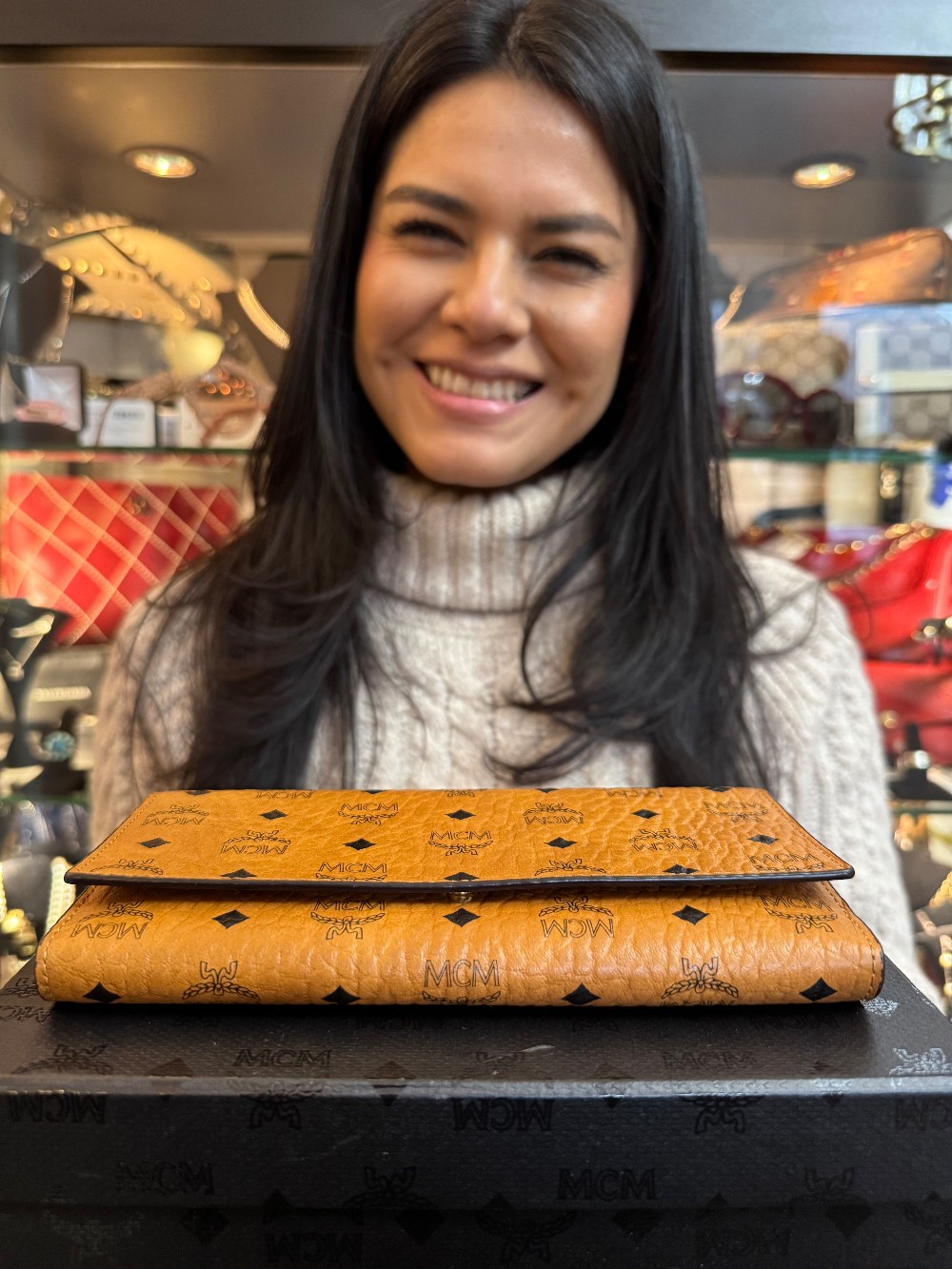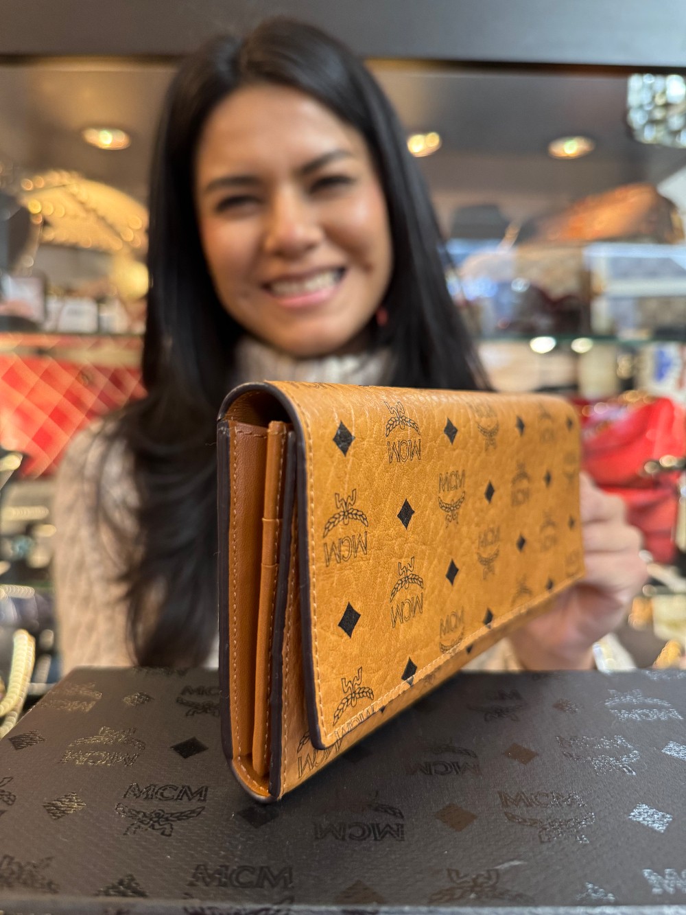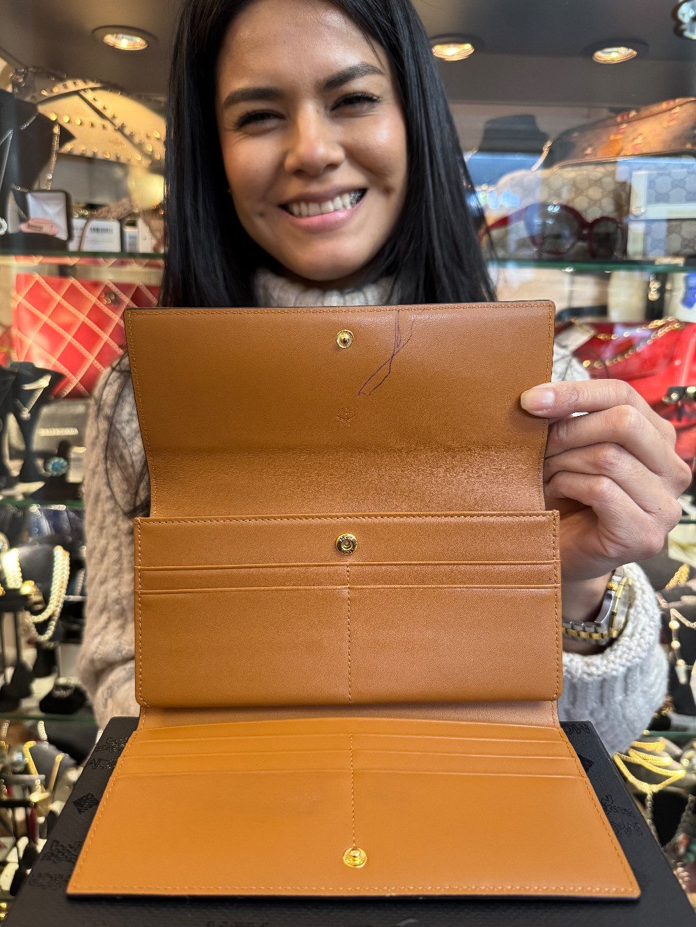 Aren Continental Wallet in Visetos / Cognac - W/ BOX - PEN MARK ON INTERIOR FLAP